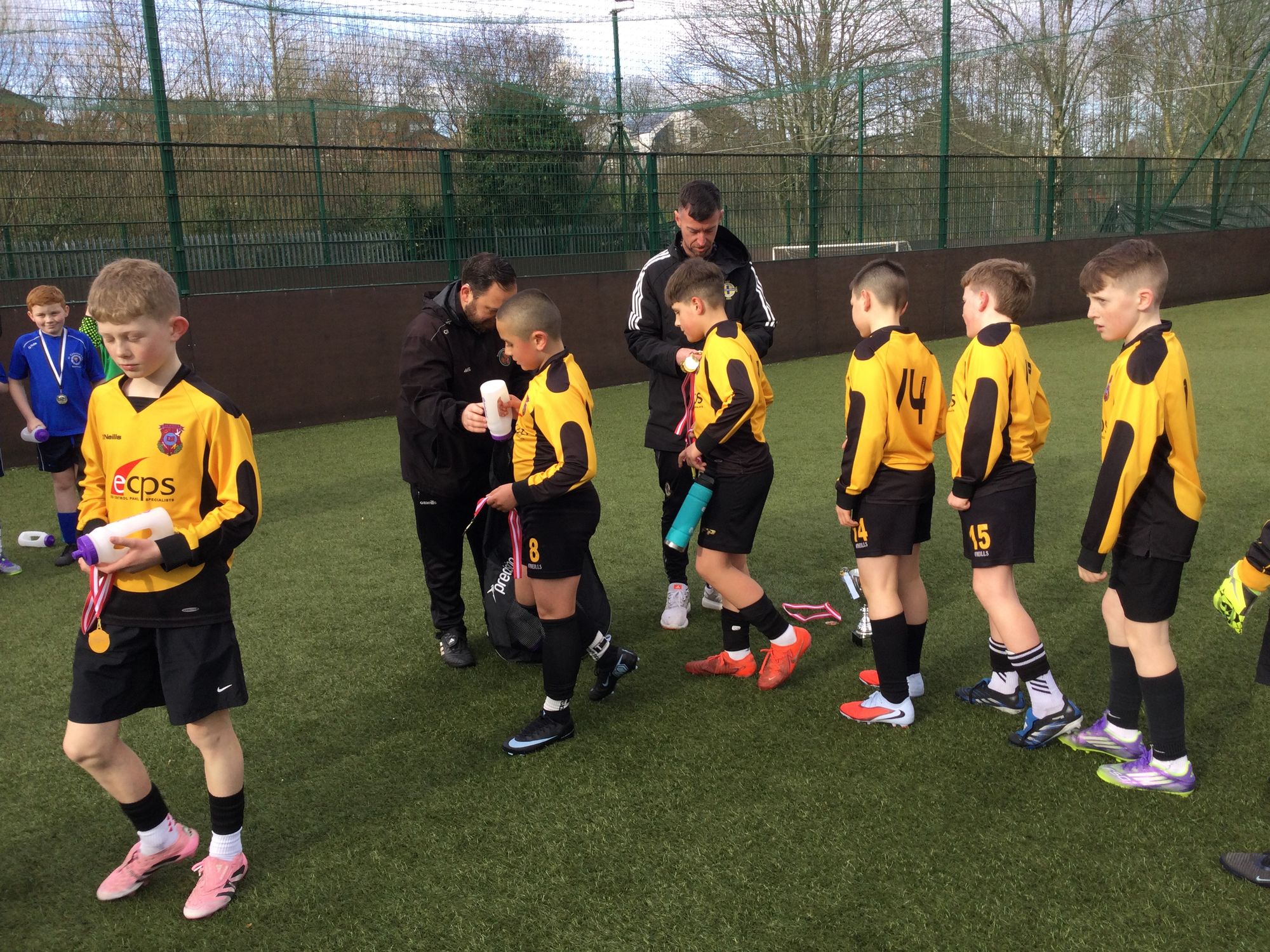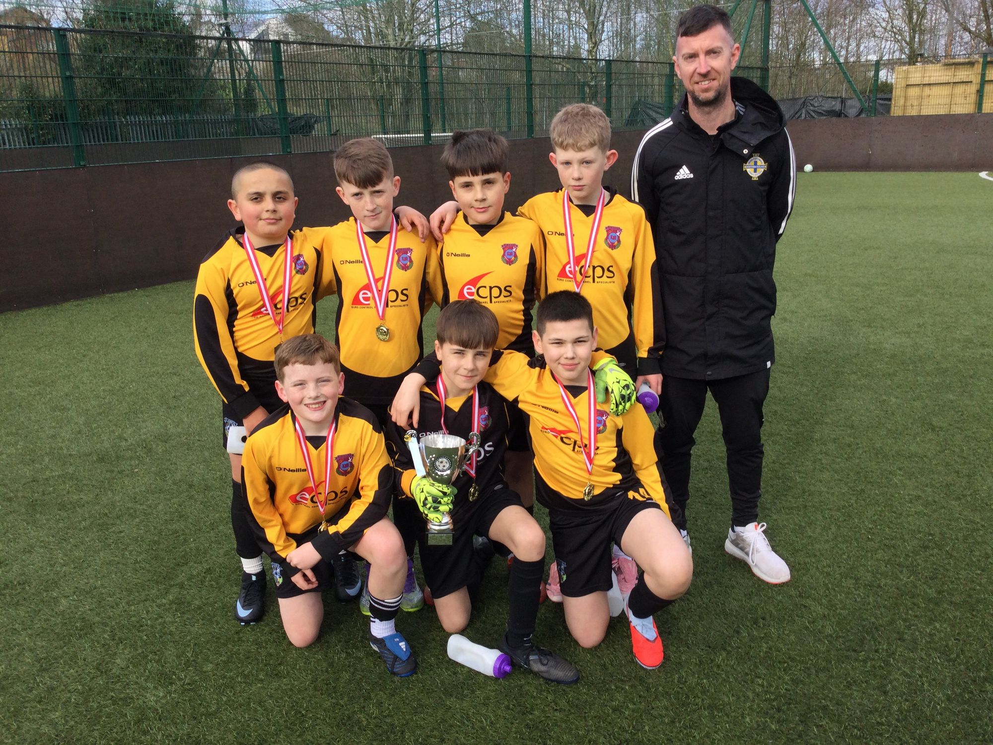 Our football team won the medium schools' section of the Derry Primary Schools' FA 5 a side tournament at the Bay Road. St. John's qualified in second place from their group after wins over Rosemount, Greenhaw and Glendermott and a defeat at the hands of St. Therese's. In the semi-final St. John's overcame Long Tower to win through to play St. Therese's again, as they defeated Holy Child on penalties. In the final, St. John's learned from their mistakes in the earlier game against St. Therese's. This time our boys were determined to take their chances and ran out convincing winners.