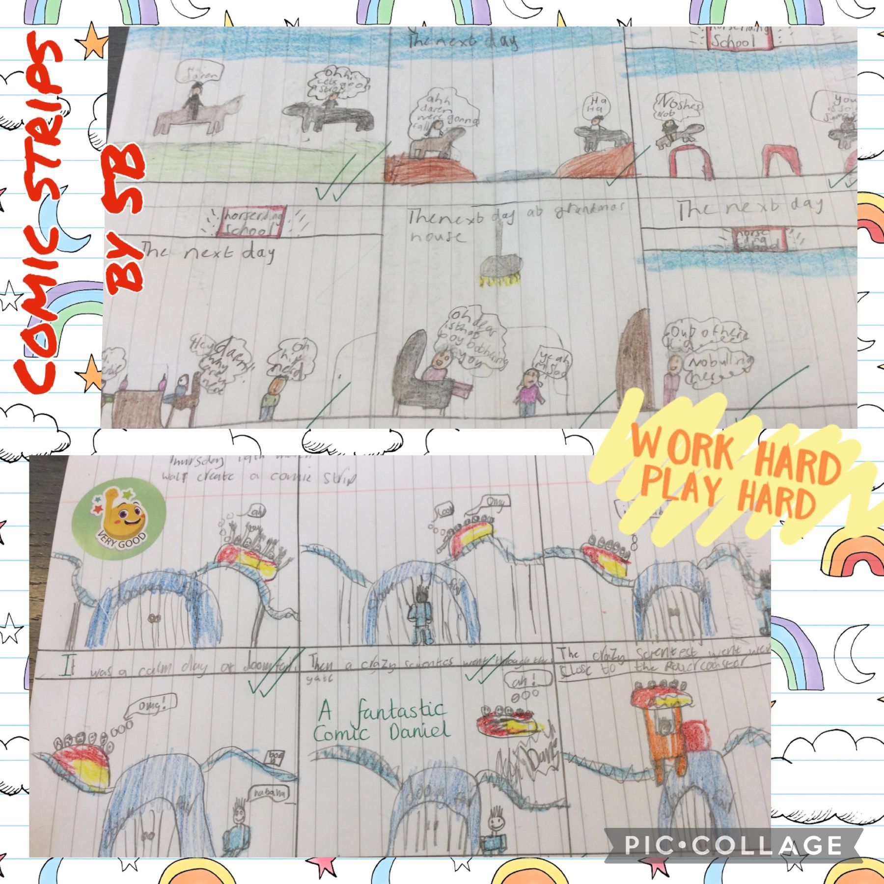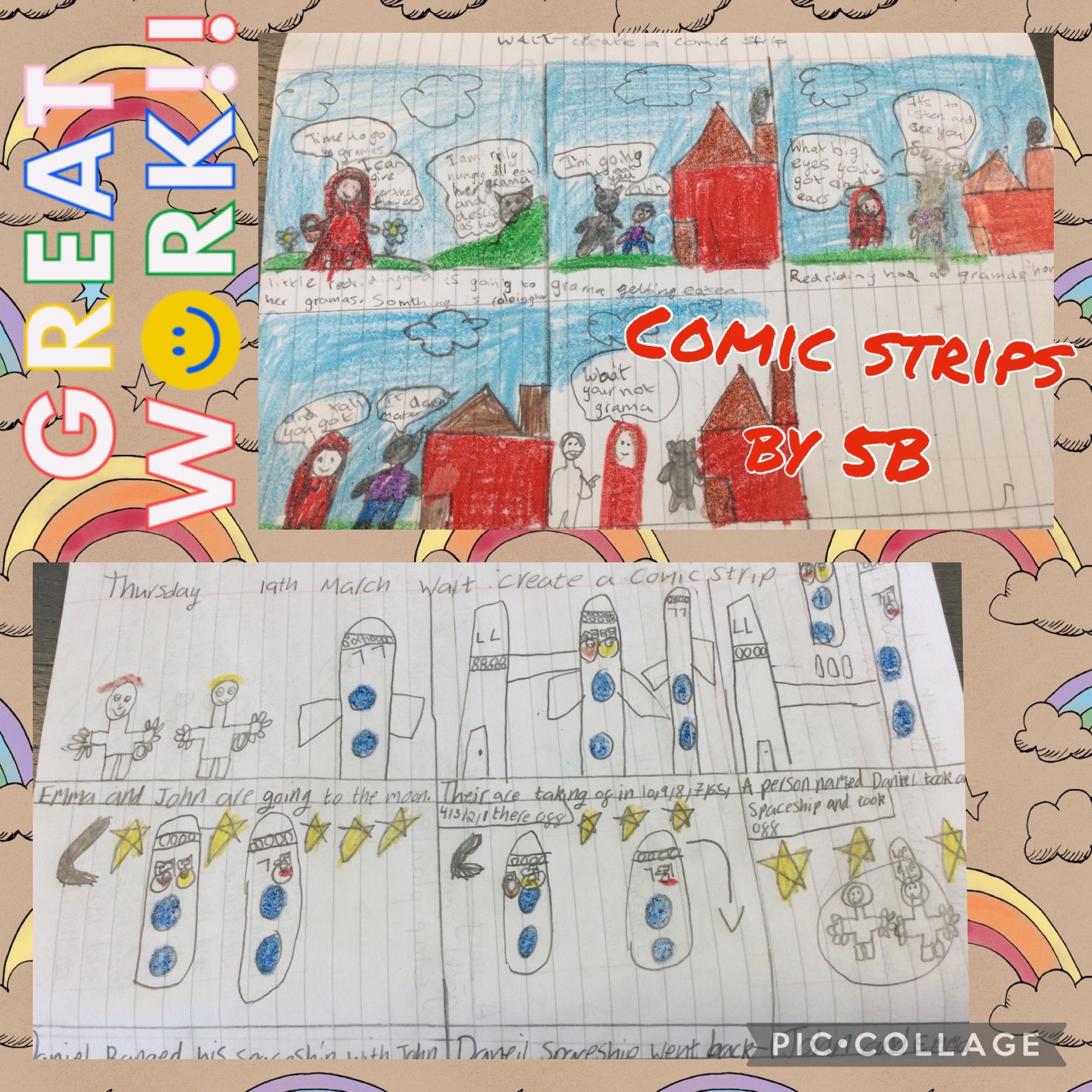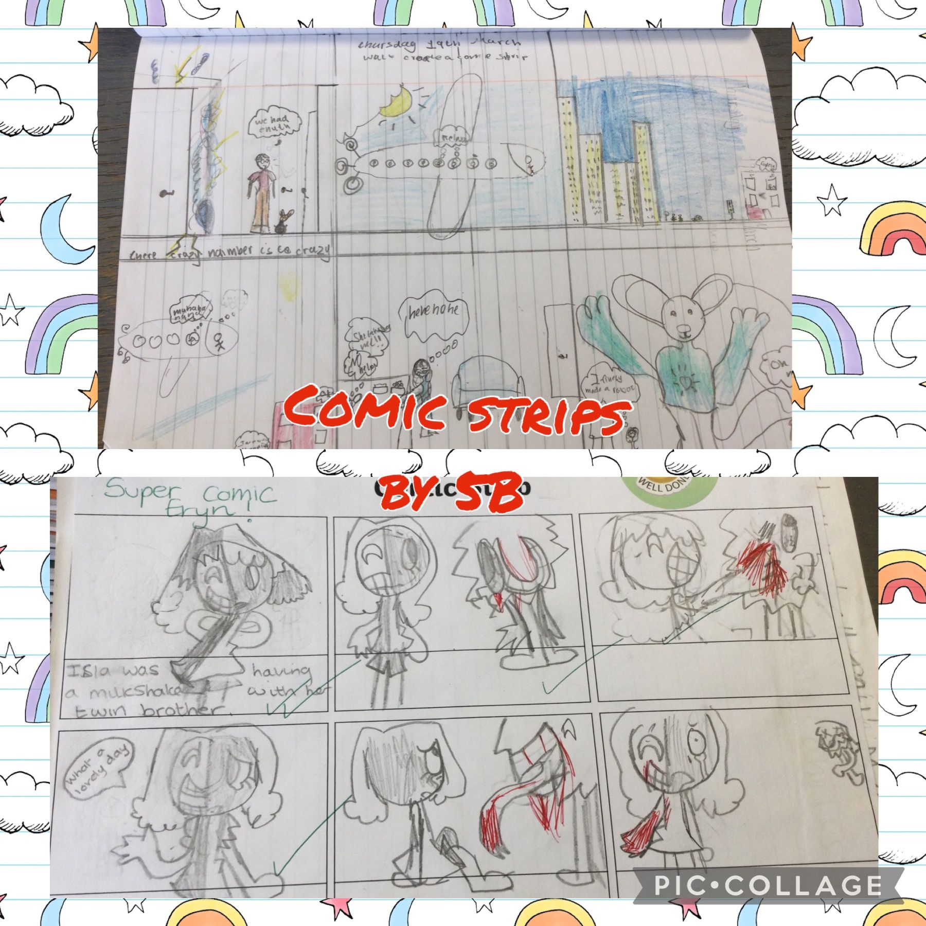 5B have been learning how to create their very own comic strips. The children completed a storyboard last week, helping them develop plot, settings and characters for their comics. Today the children brought their ideas to life, producing fantastic comic strips!