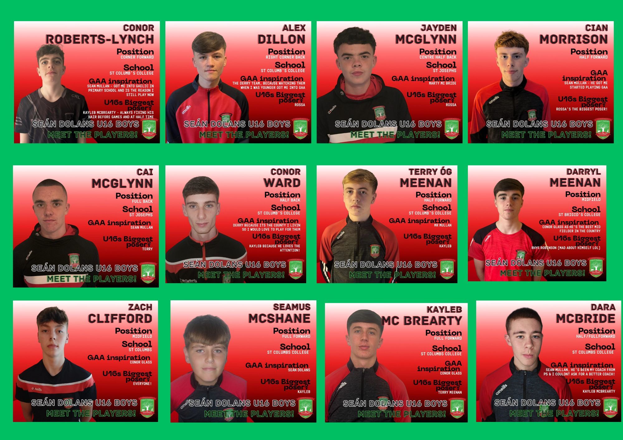 St John's Primary School proudly wishes the U16 boys the very best of luck in the County Championship Final this Thursday night at Owenbeg. It is a great source of pride for St John's that 12 players on the team are former pupils.