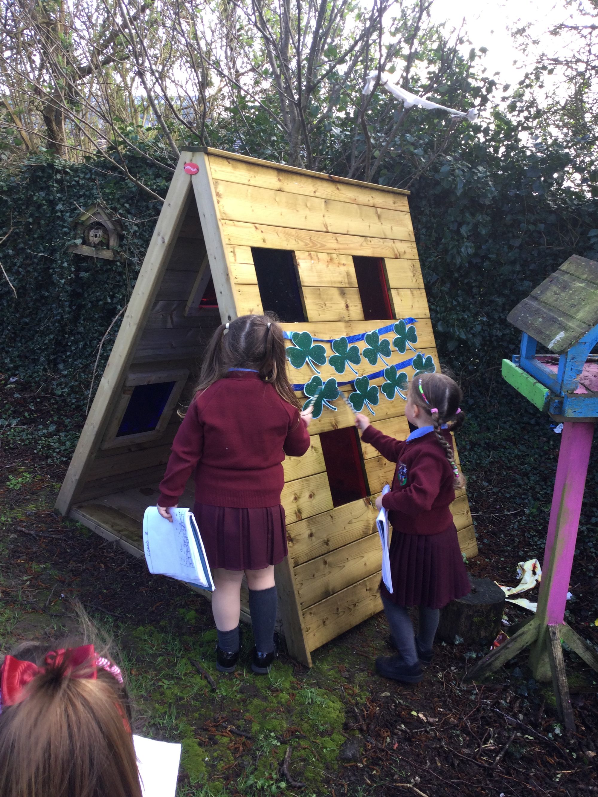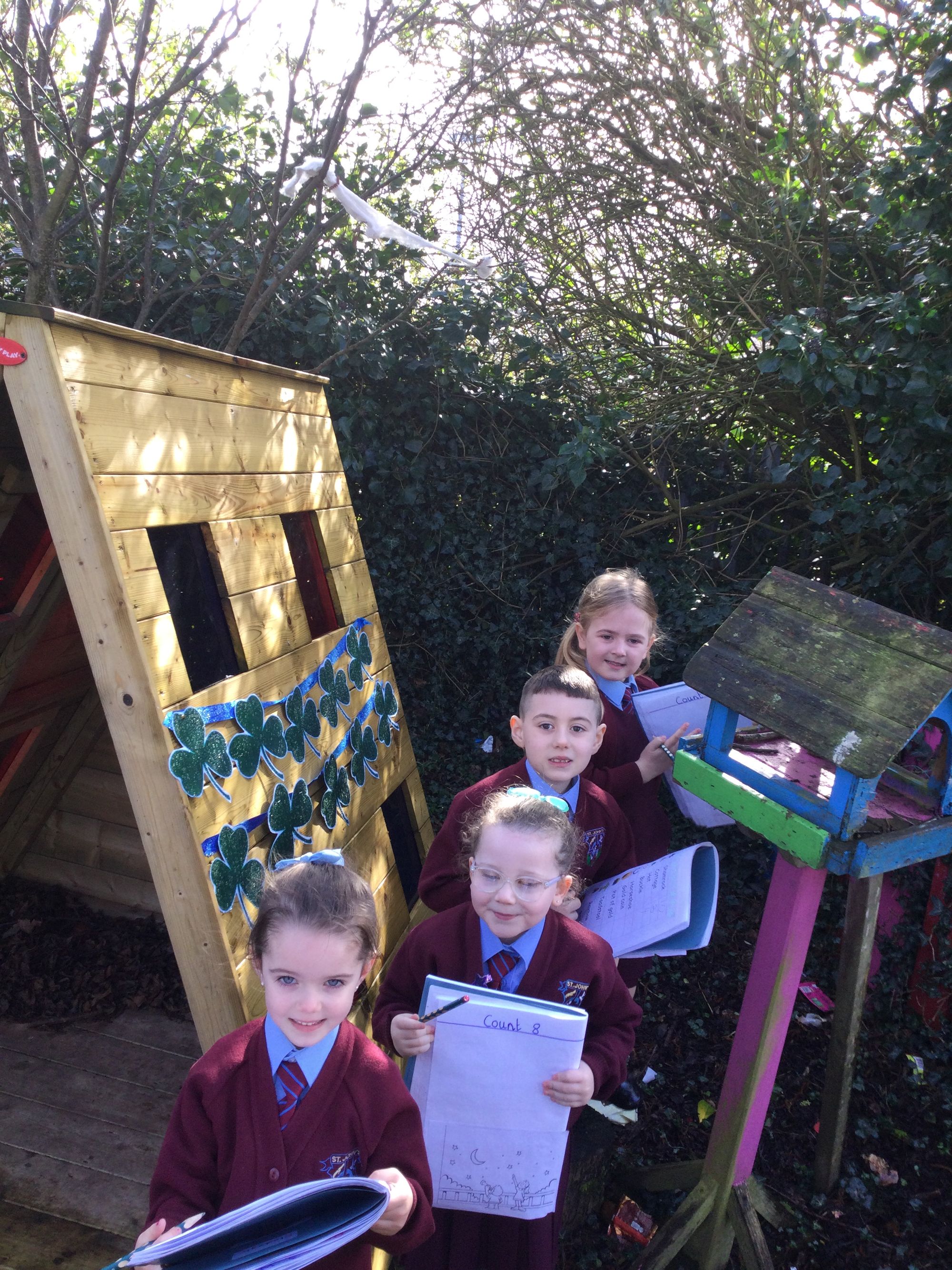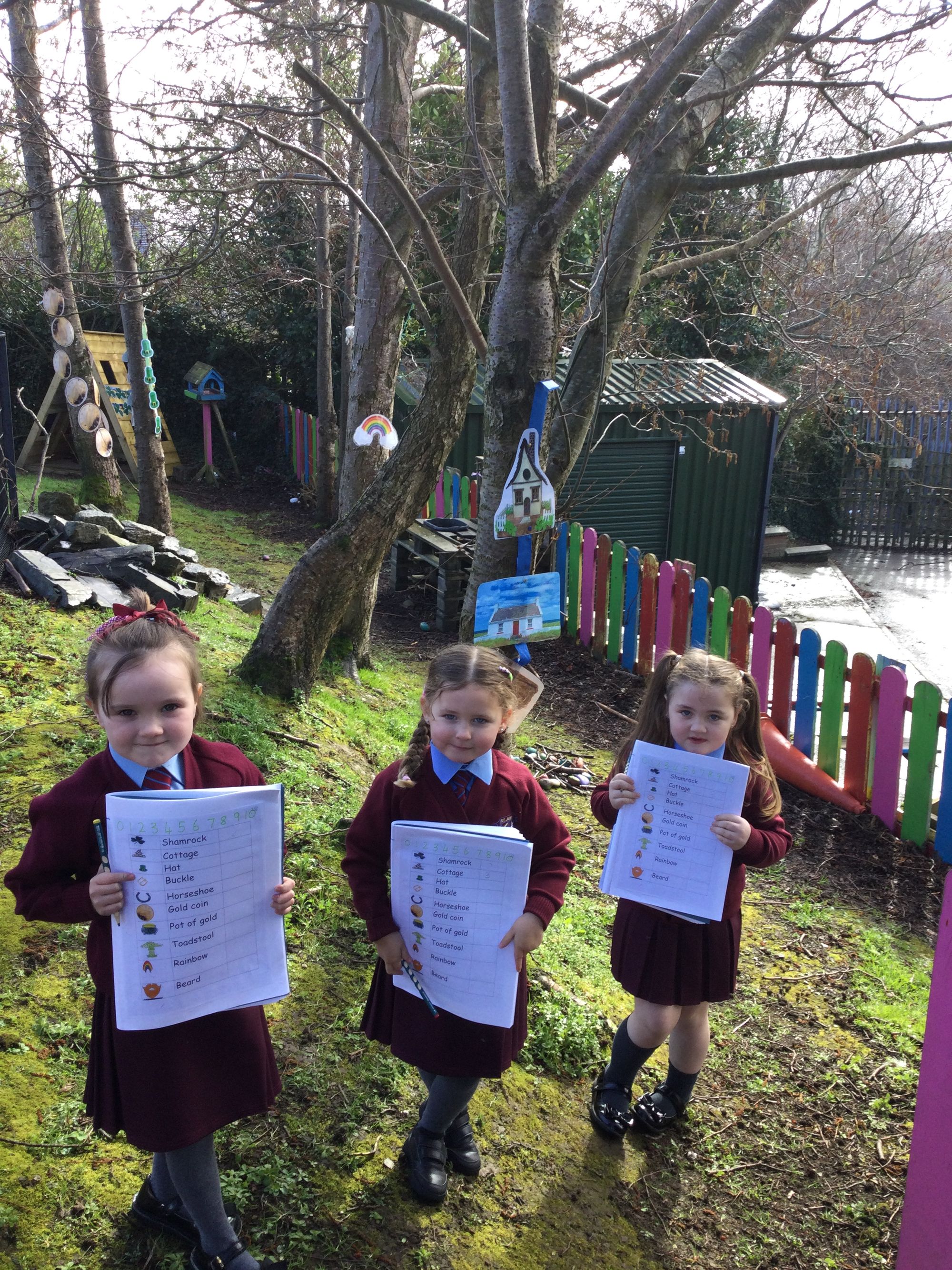 Year 1a visited the outdoor classroom today to practise their counting. They spotted shamrocks,cottages and even leprechaun beards☘