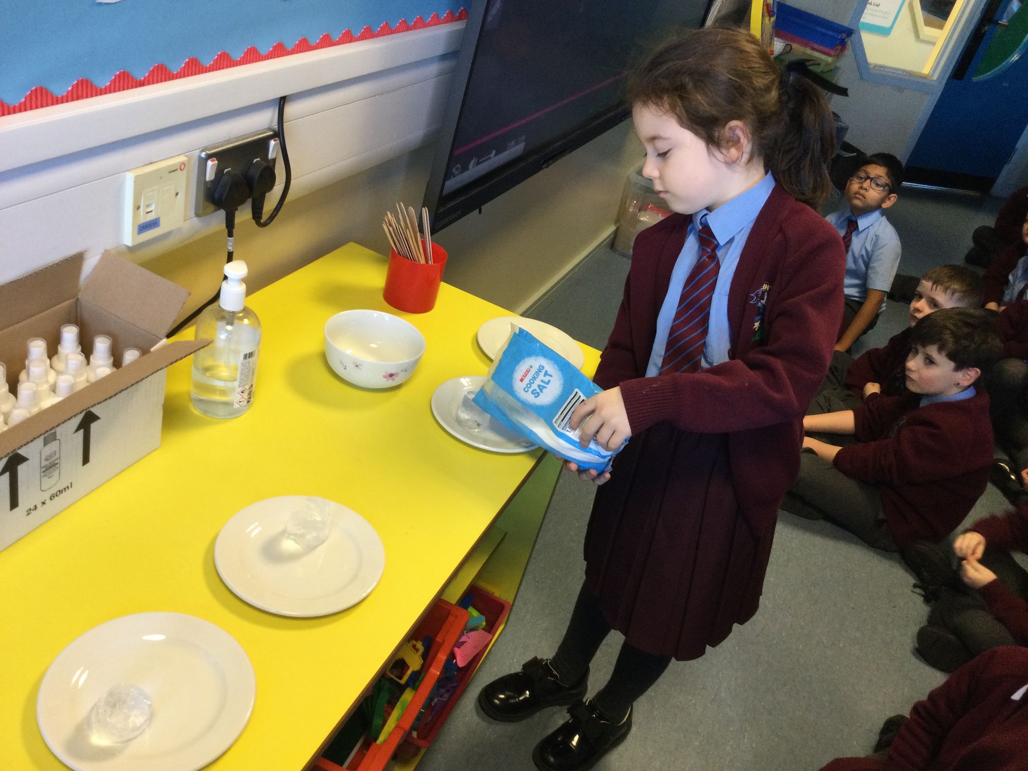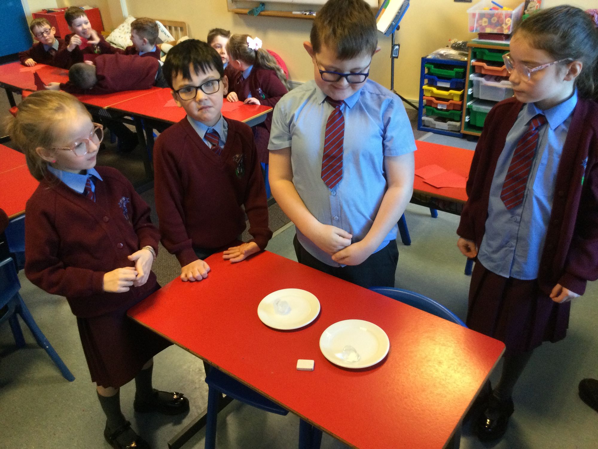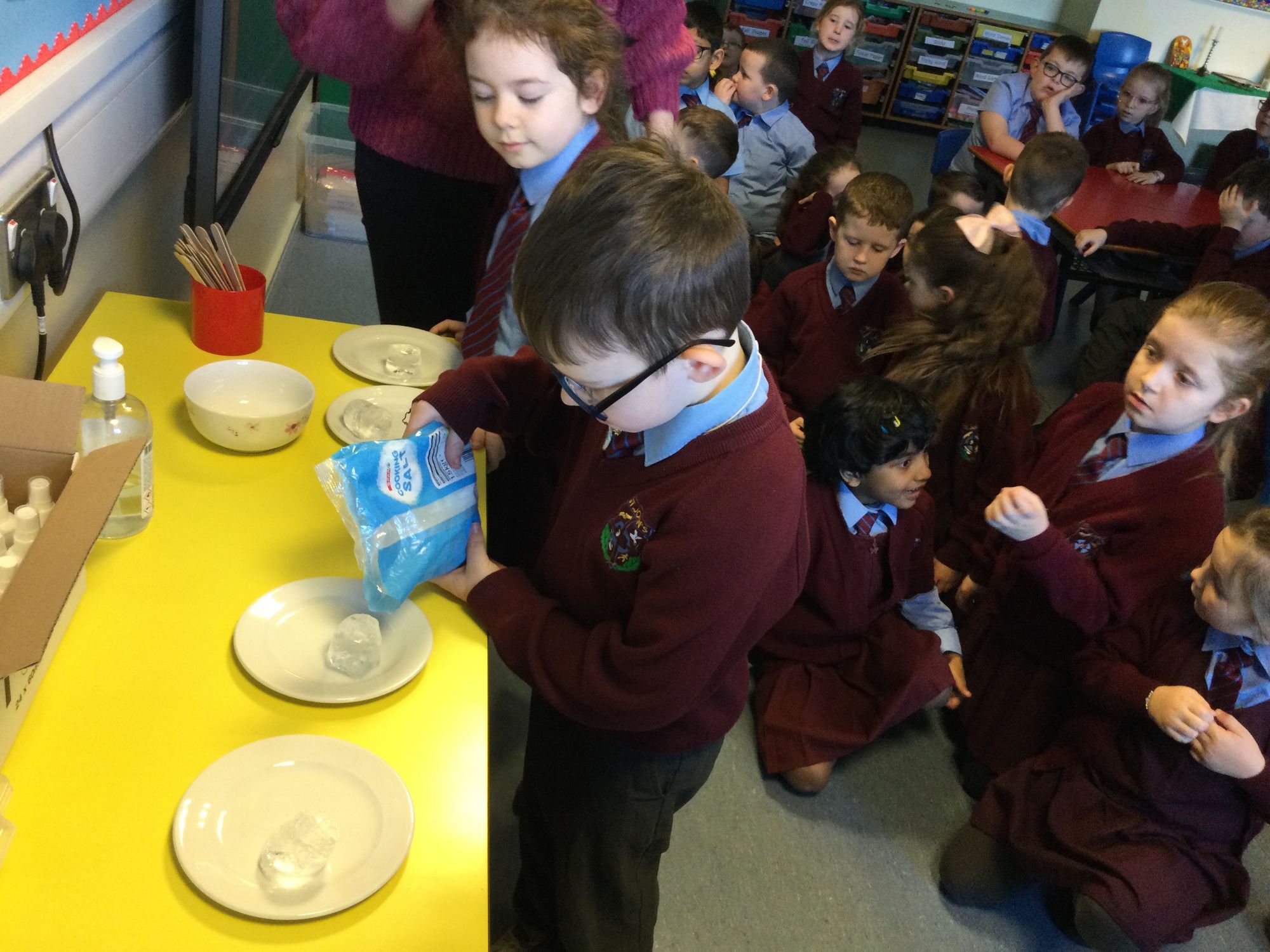 With the recent icy weather, Year 3 explored why salt is often used on roads in winter. We carried out a simple experiment using two ice cubes: one sprinkled in salt and one without. We discovered that the ice cube with salt melted much faster! This happens because salt lowers the freezing point of water, making it harder for ice to stay frozen. Our experiment helped us to inderstand how salt keeps roads safer by preventing ice from forming.
