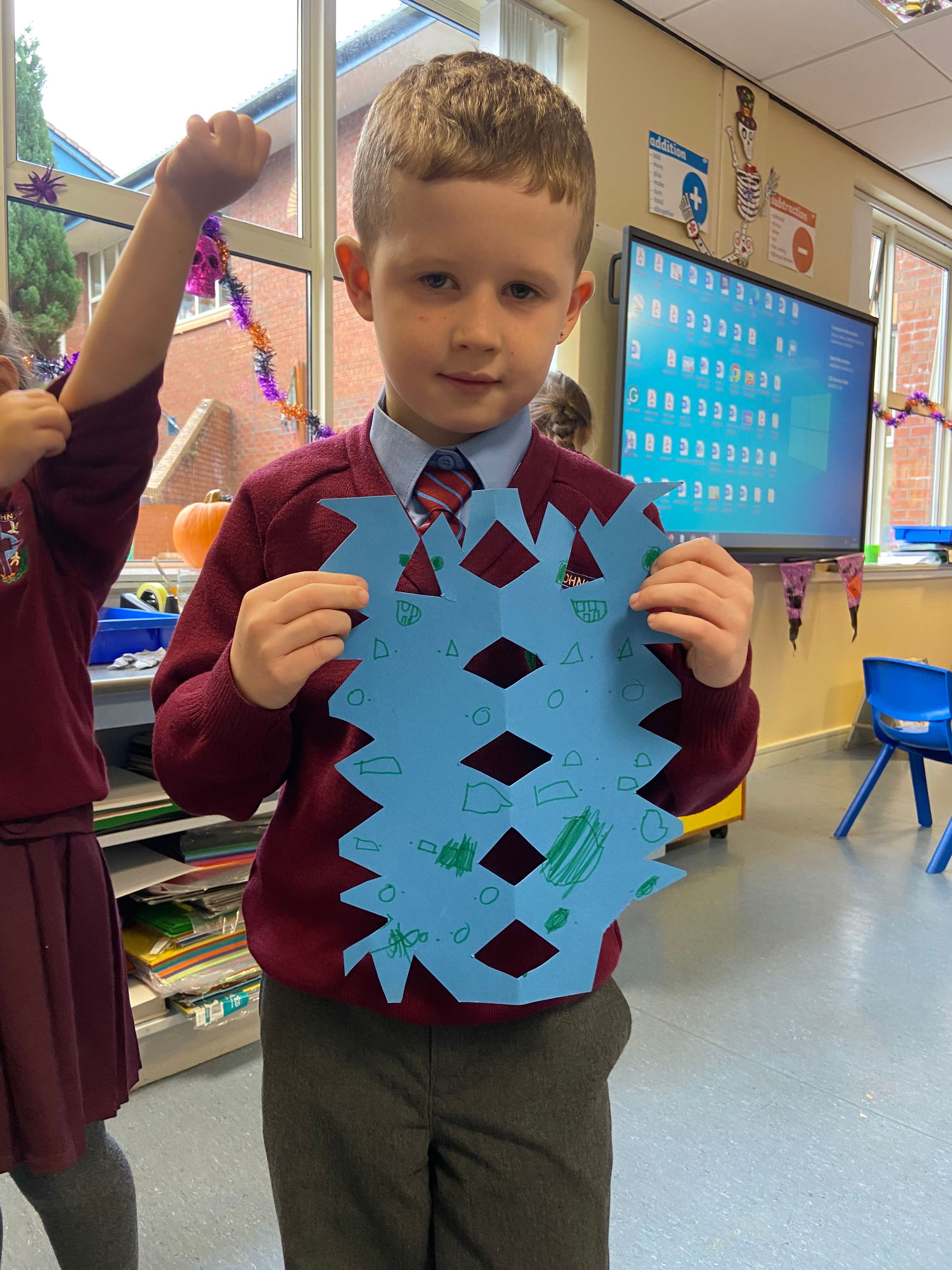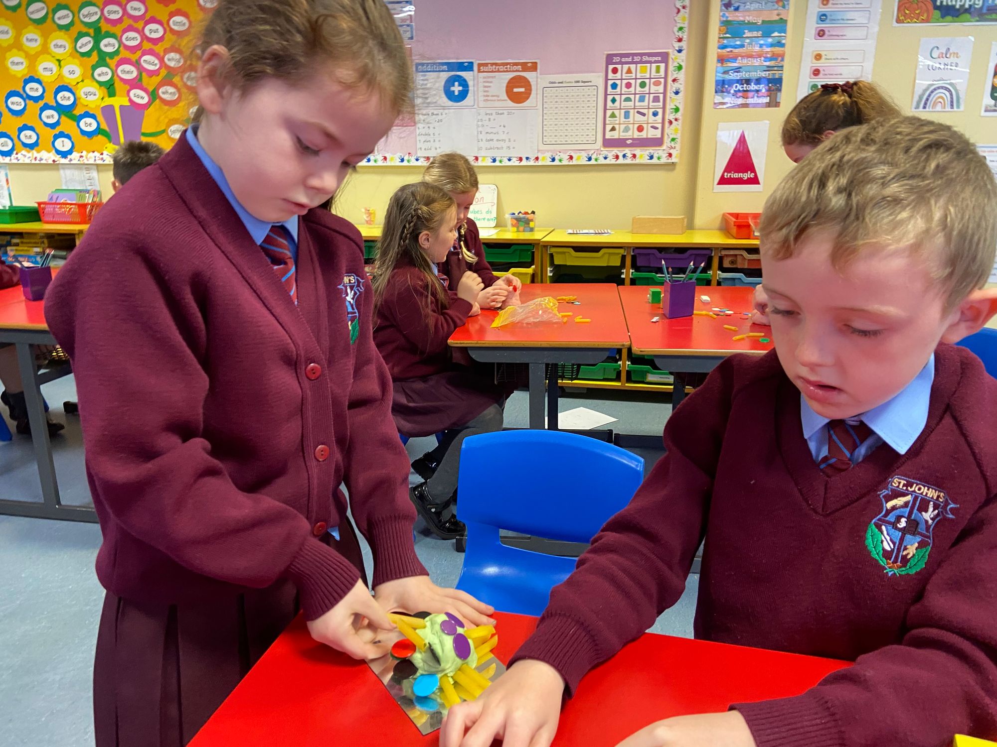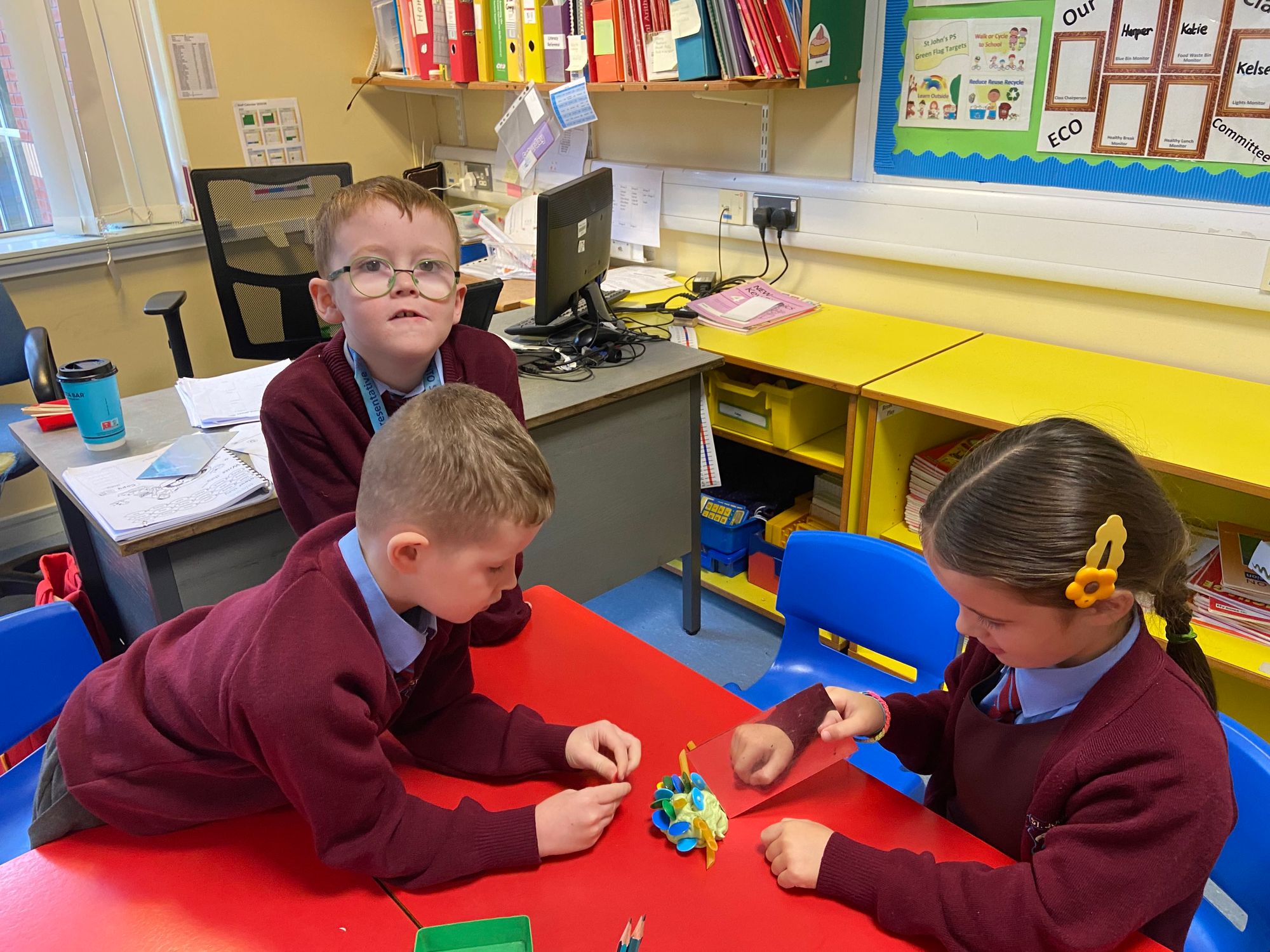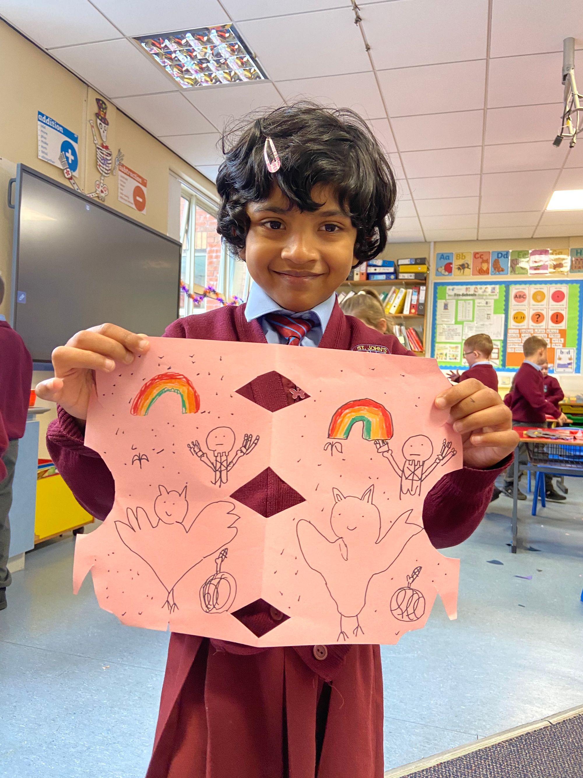 We began our exploration with Symmetry, using mirrors to investigate reflections, identifying symmetrical shapes, and creating eye-catching symmetrical cut-outs. The children had great fun designing Halloween-themed symmetrical cauldrons and crafting symmetrical Halloween monsters out of playdough—a perfect blend of creativity and maths! These hands-on activities have brought symmetry to life in a fun and memorable way.