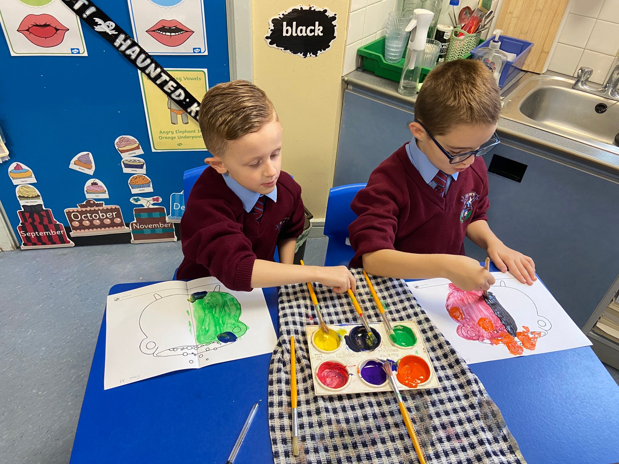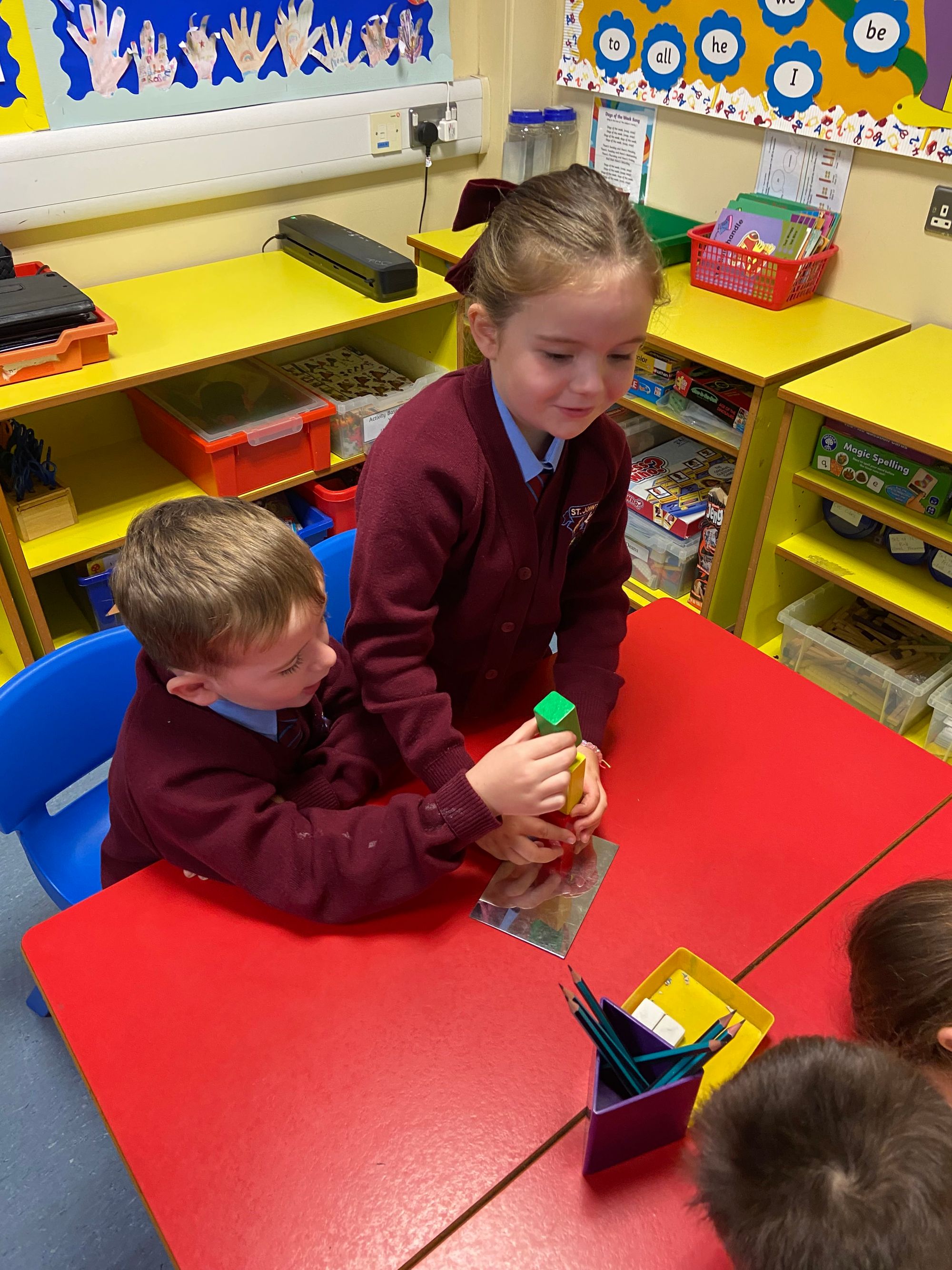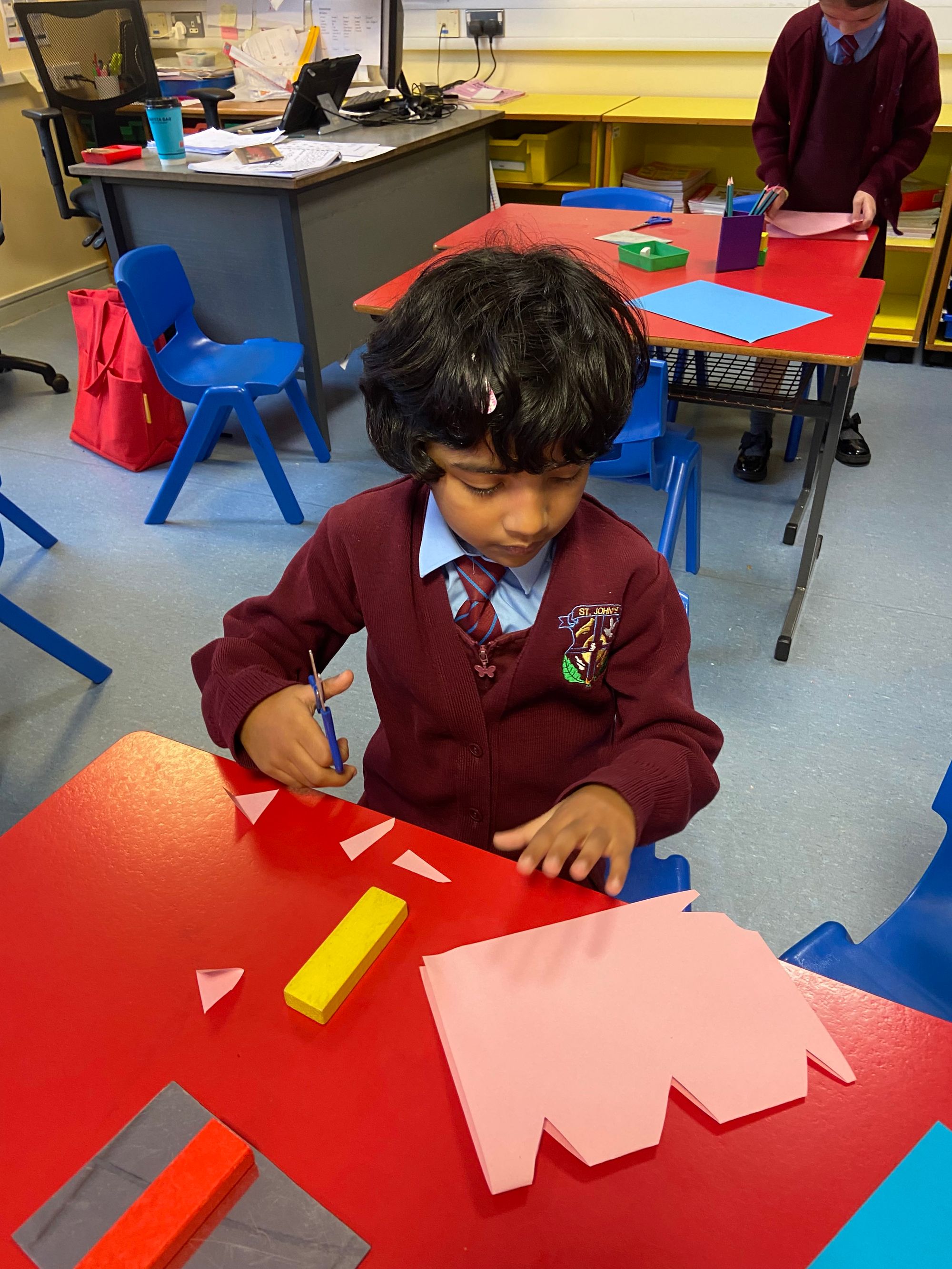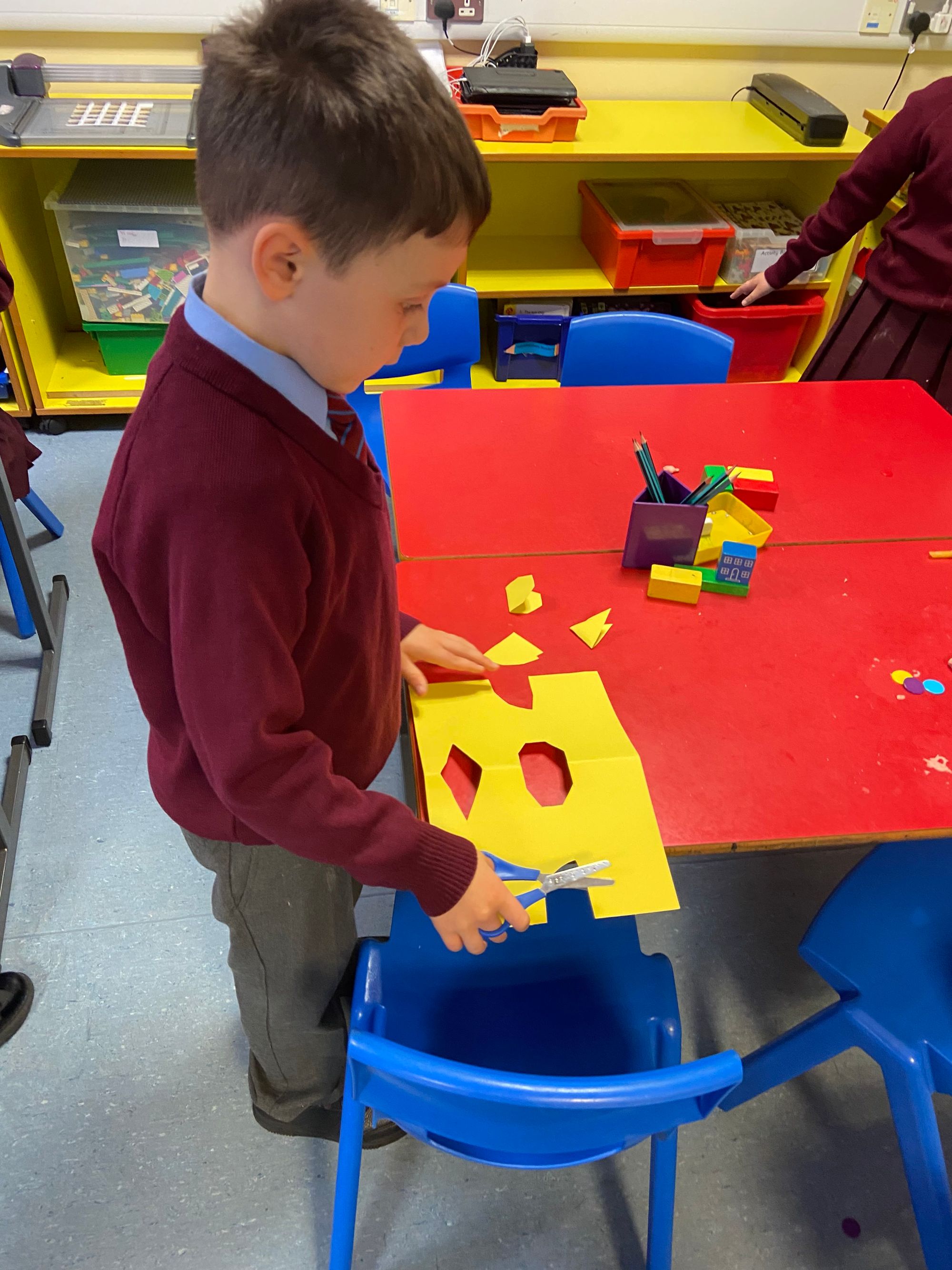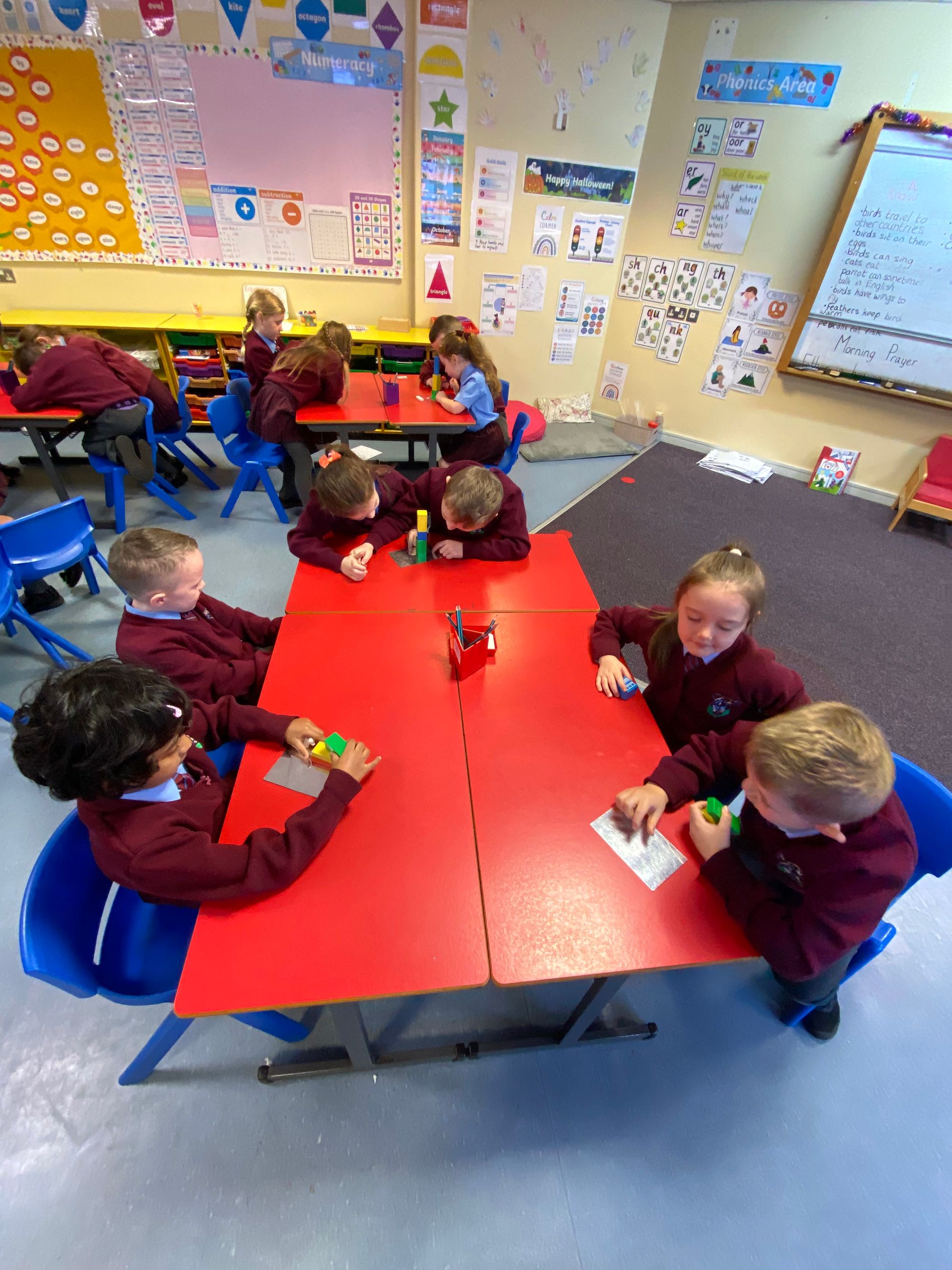 We began our exploration with Symmetry, using mirrors to investigate reflections, identifying symmetrical shapes, and creating eye-catching symmetrical cut-outs. The children had great fun designing Halloween-themed symmetrical cauldrons and crafting symmetrical Halloween monsters out of playdough—a perfect blend of creativity and maths! These hands-on activities have brought symmetry to life in a fun and memorable way.