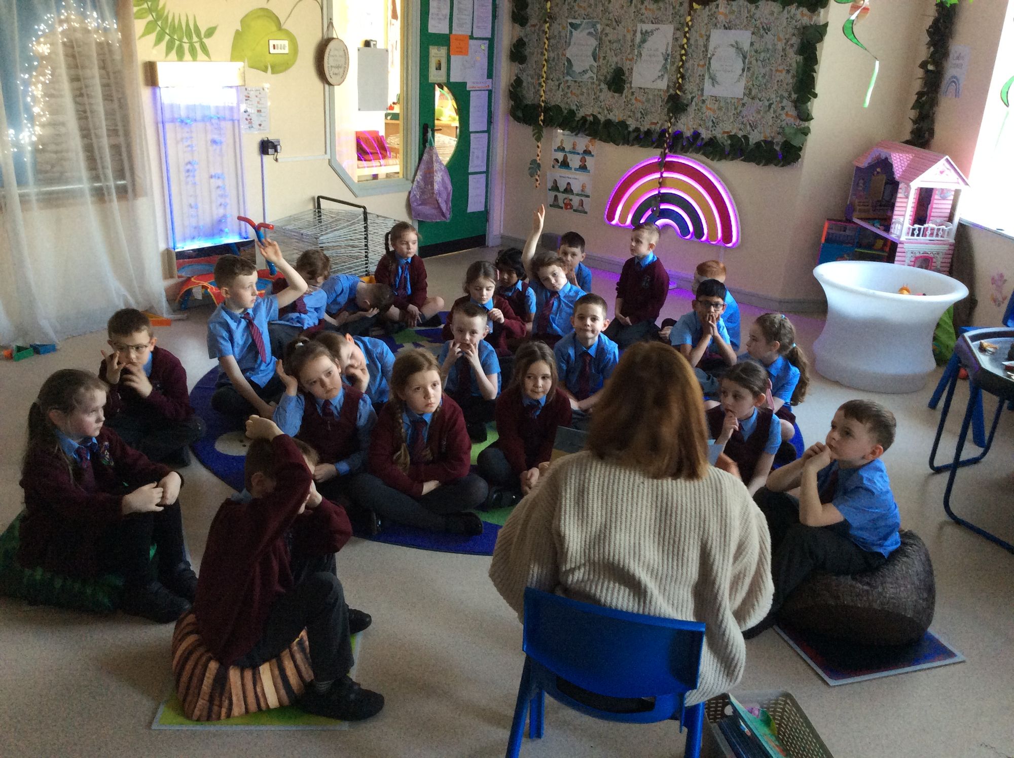 In our PATHs lesson this week, we visited the Rainforest room. 3B were able to enjoy the calm room, practice breathing techniques and learn more about feelings; how to identify them, and how to deal with them. This week we read a book about the feeling, ‘worried’. 3B look forward to many more visits to the Rainforest room and spending time on our well-being in St John’s Primary School.