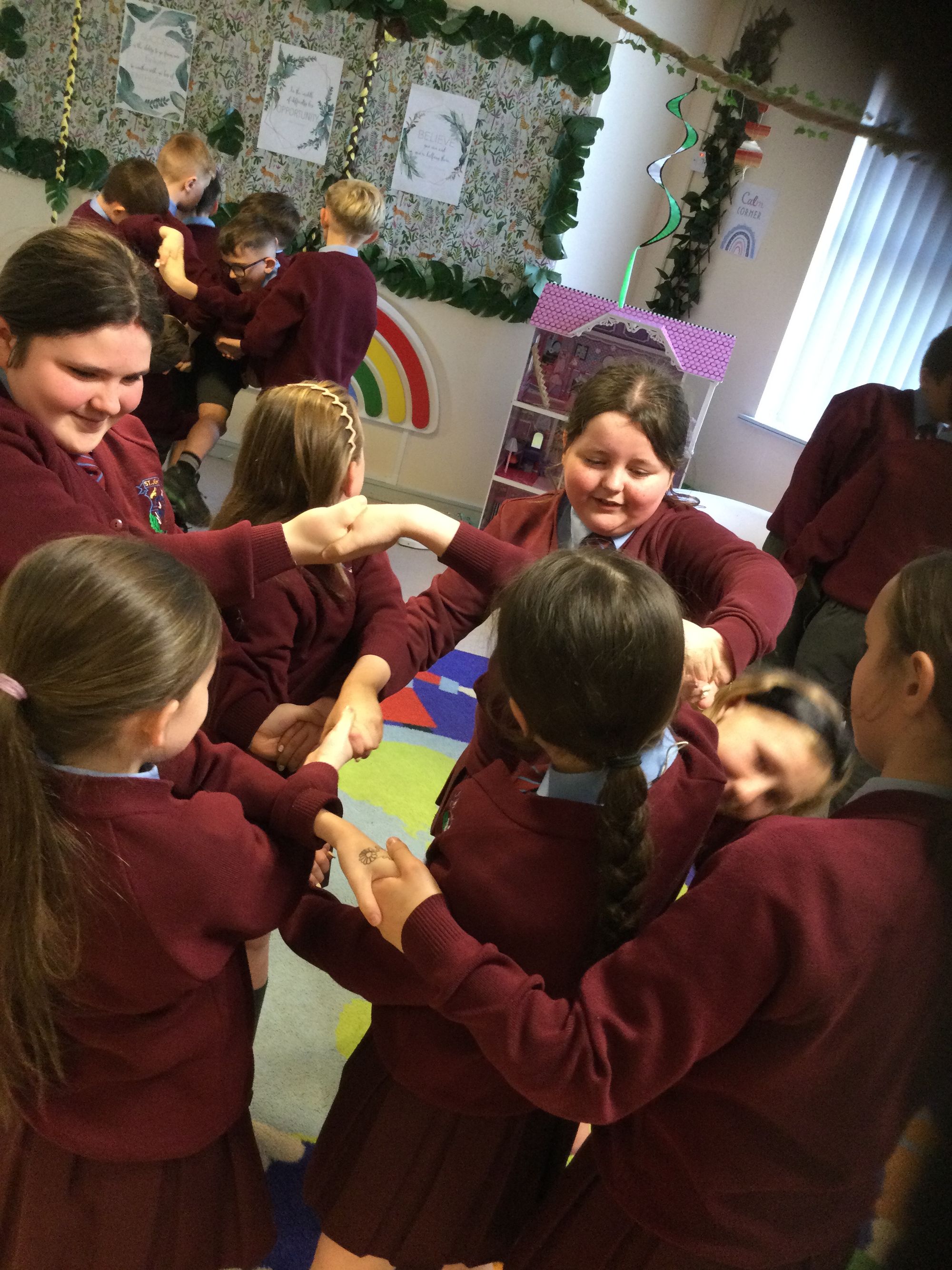 Last Wednesday, Year 6C spent time in the Rainforest room discussing friendships and teamwork. They tackled the Human Knot challenge. Children worked together using communication, patience and teamwork to untangle themselves, building trust and strengthening their friendships. We discussed how to support our friends and look out for each other.