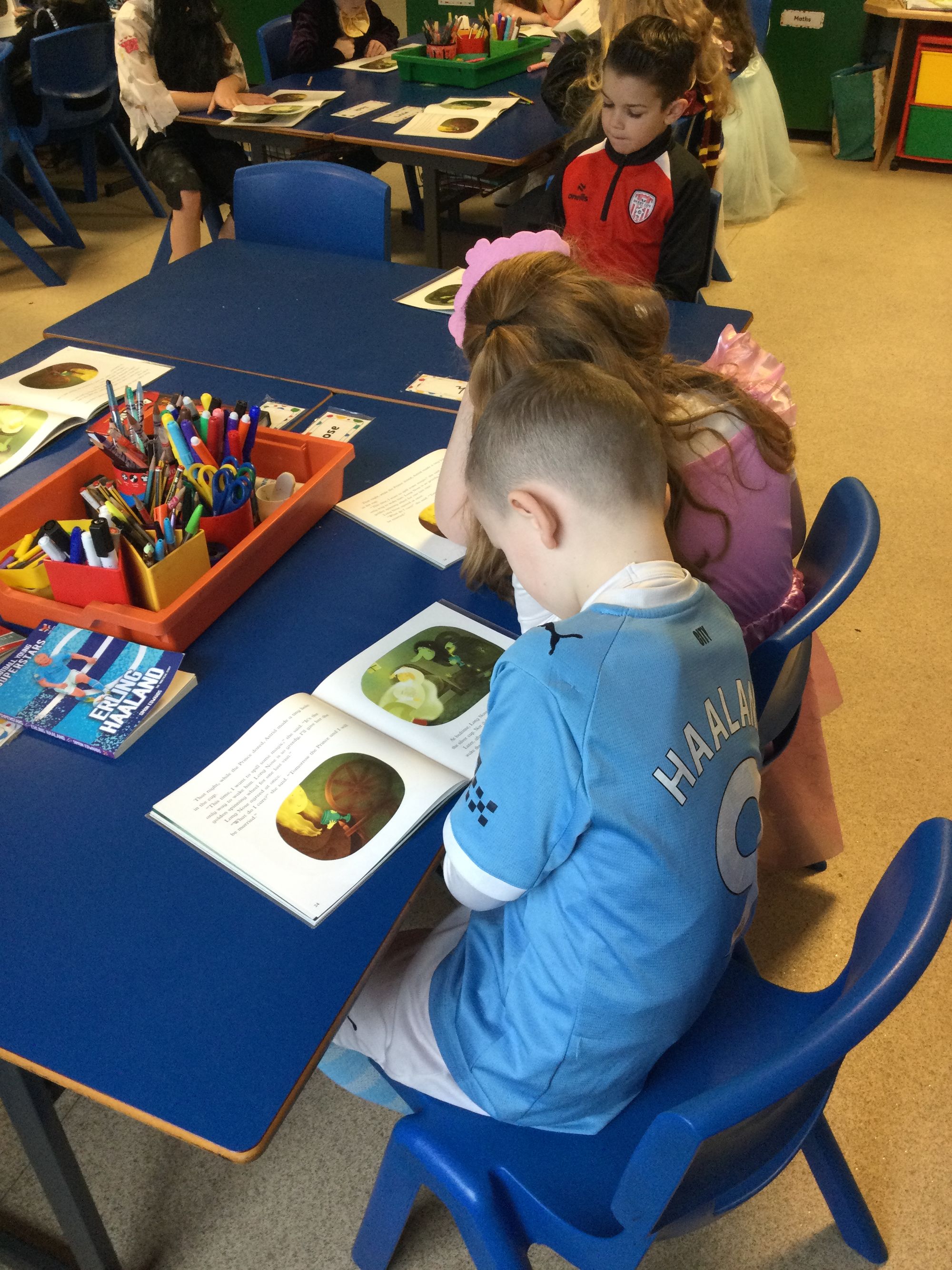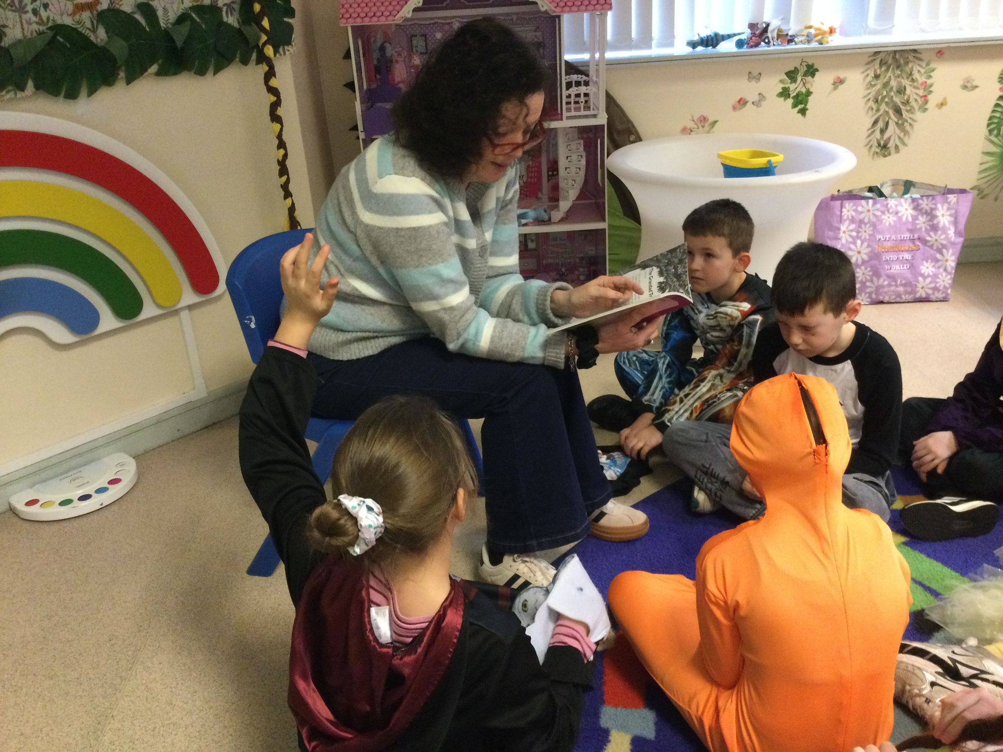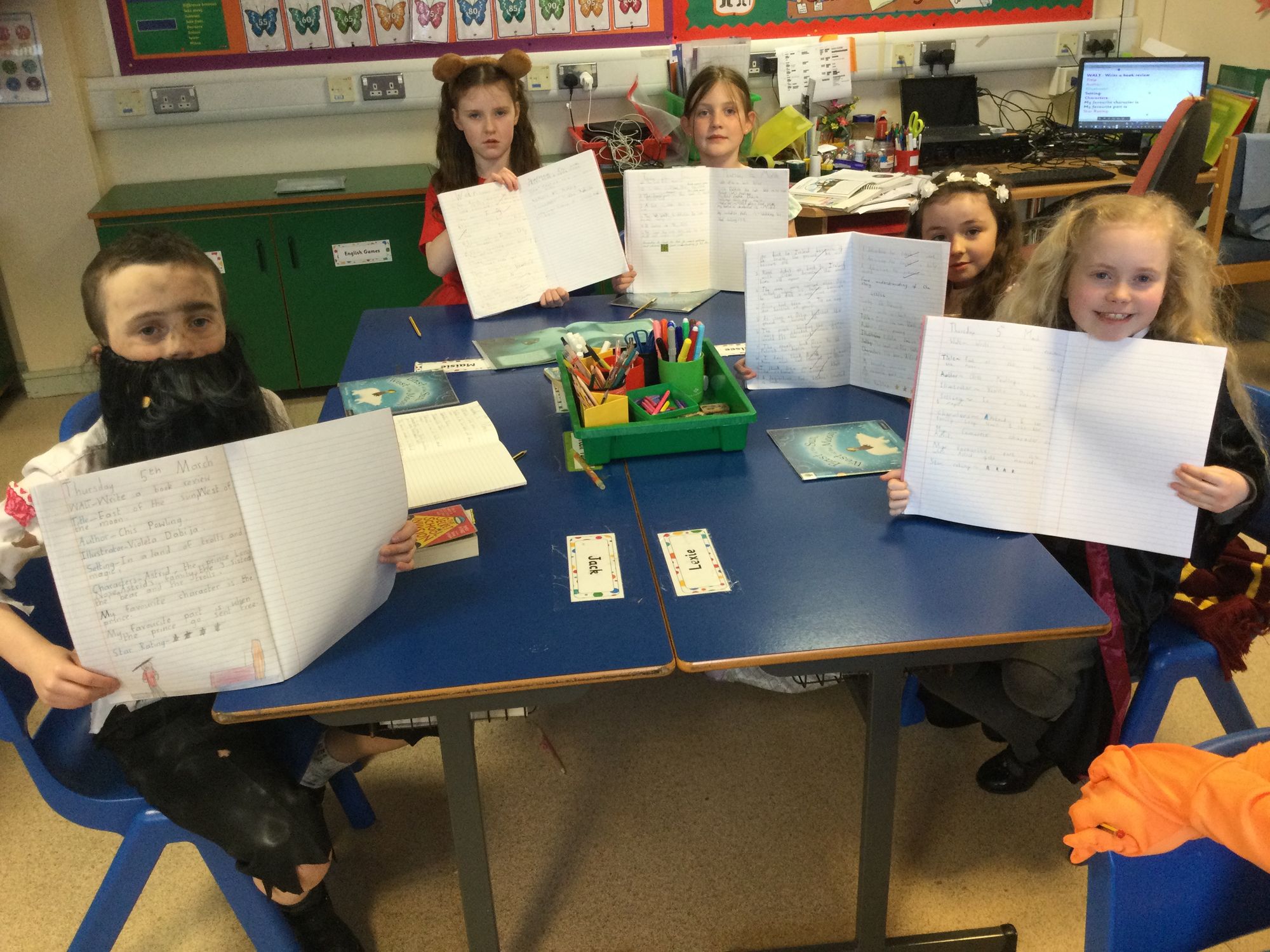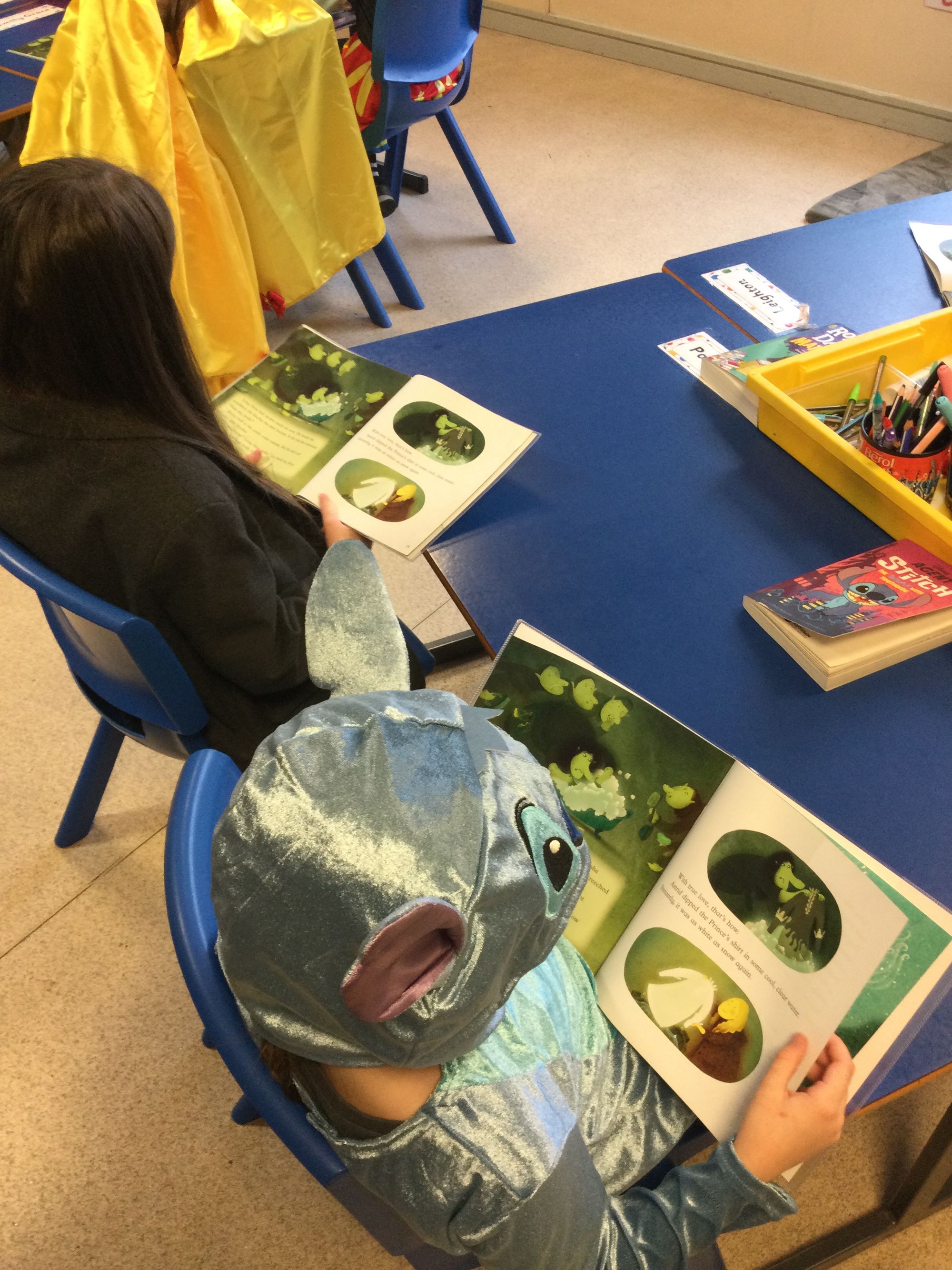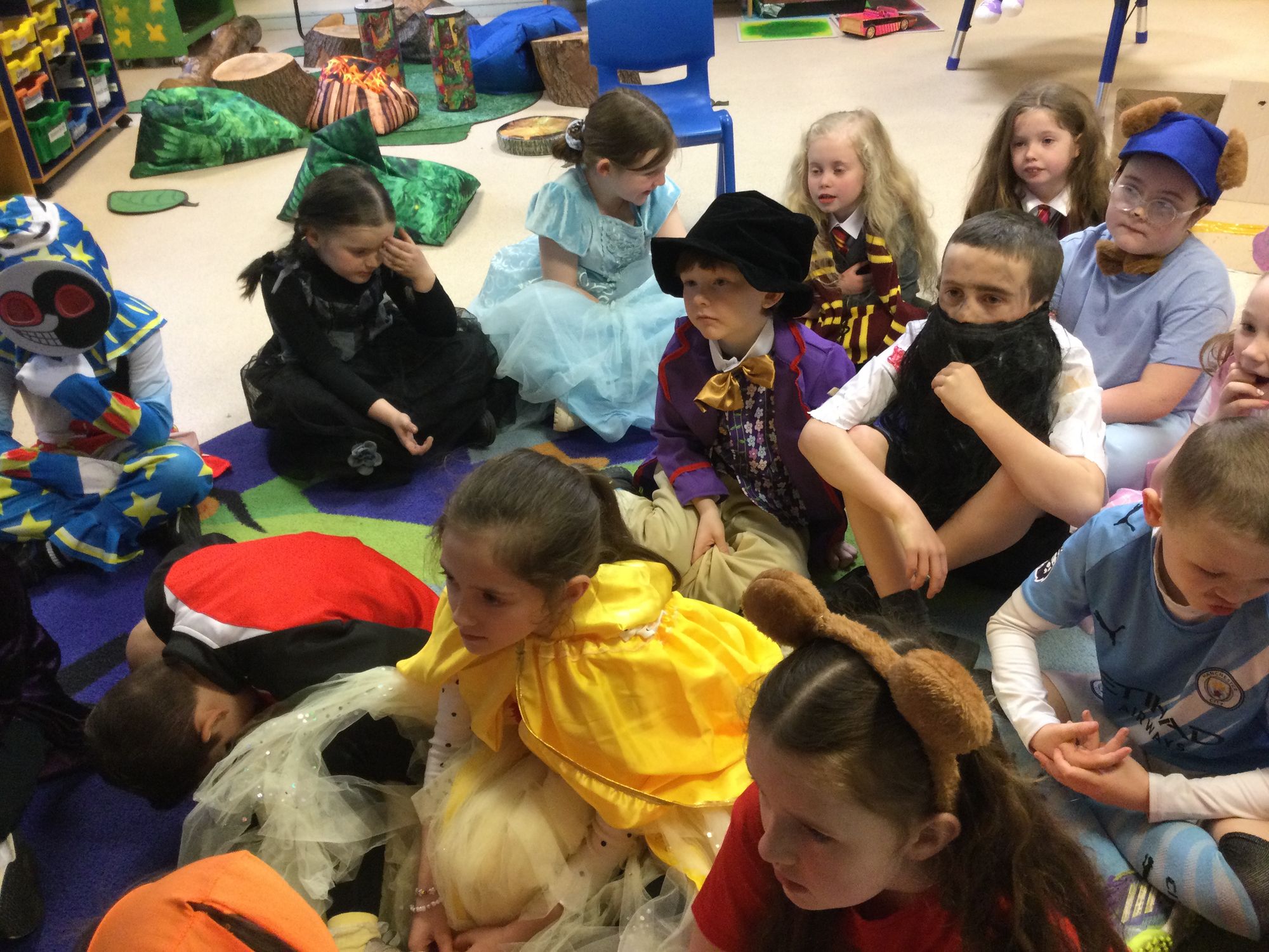 World Book Day in Year 4A. Thank you to Mrs Bradley for reading stories and poems. Boys and girls, your costumes were fantastic.