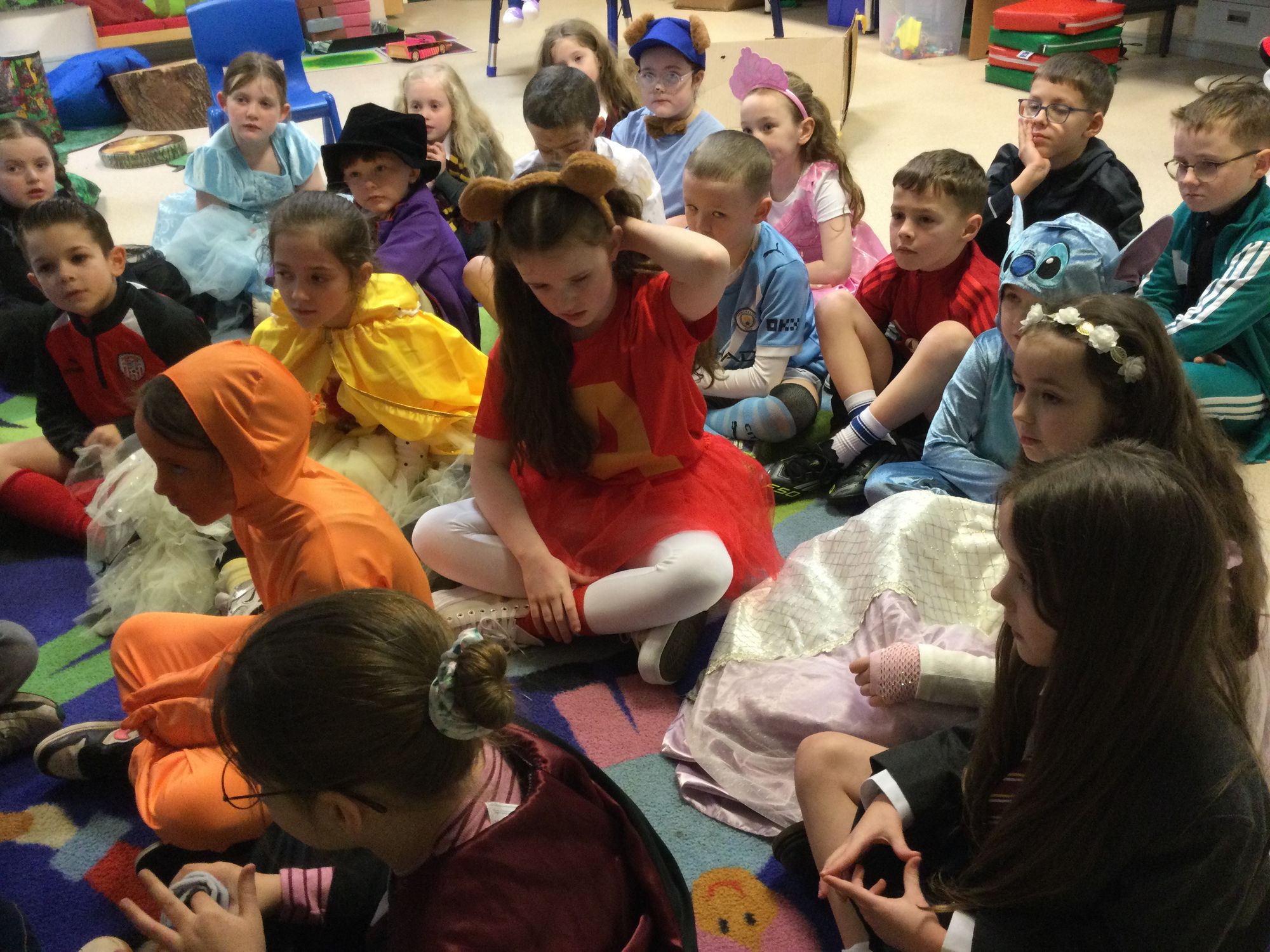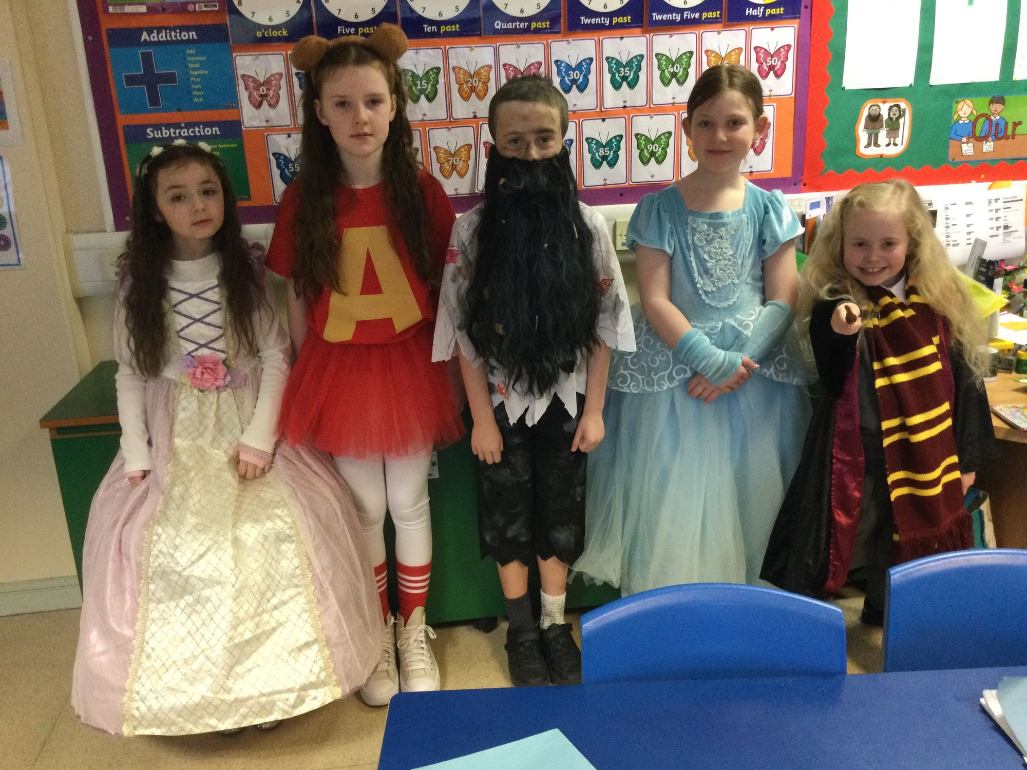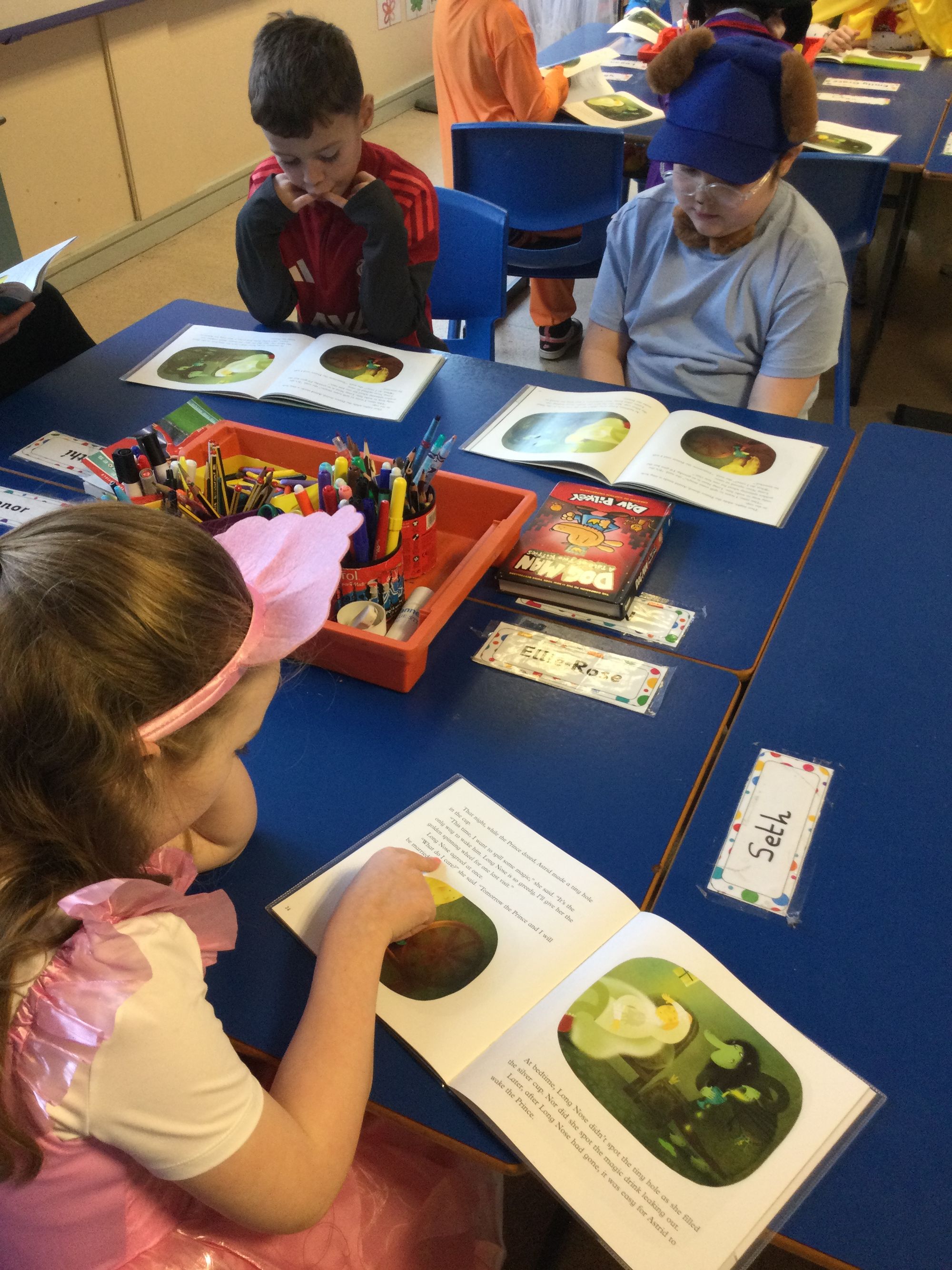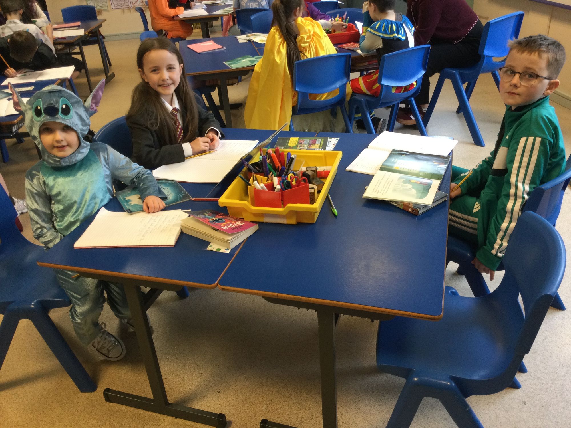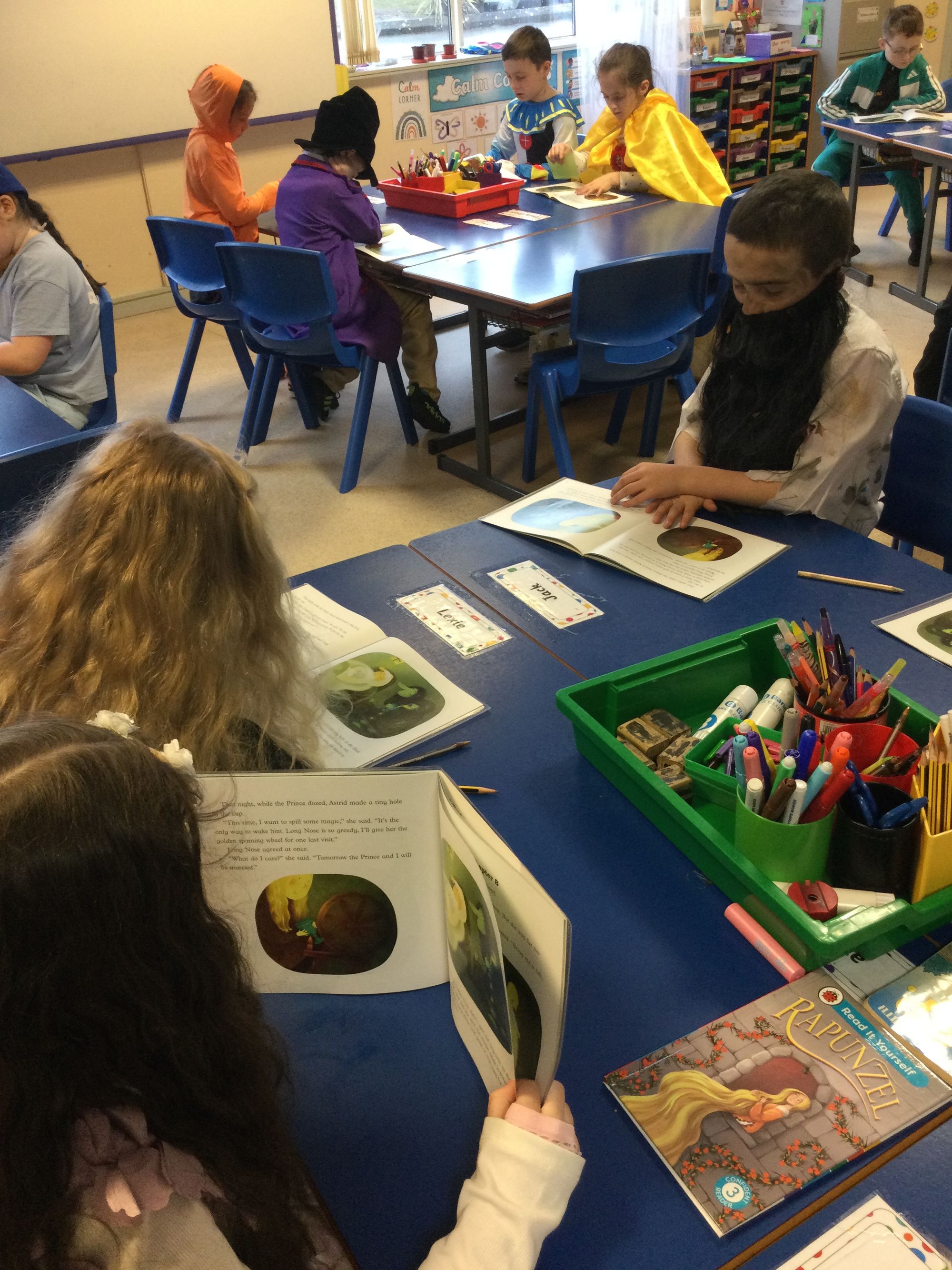 World Book Day in Year 4A. Thank you to Mrs Bradley for reading stories and poems. Boys and girls, your costumes were fantastic.