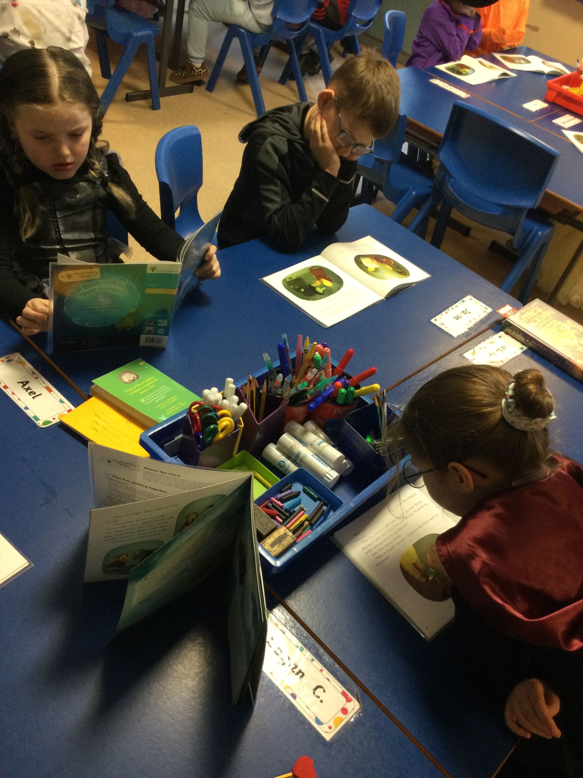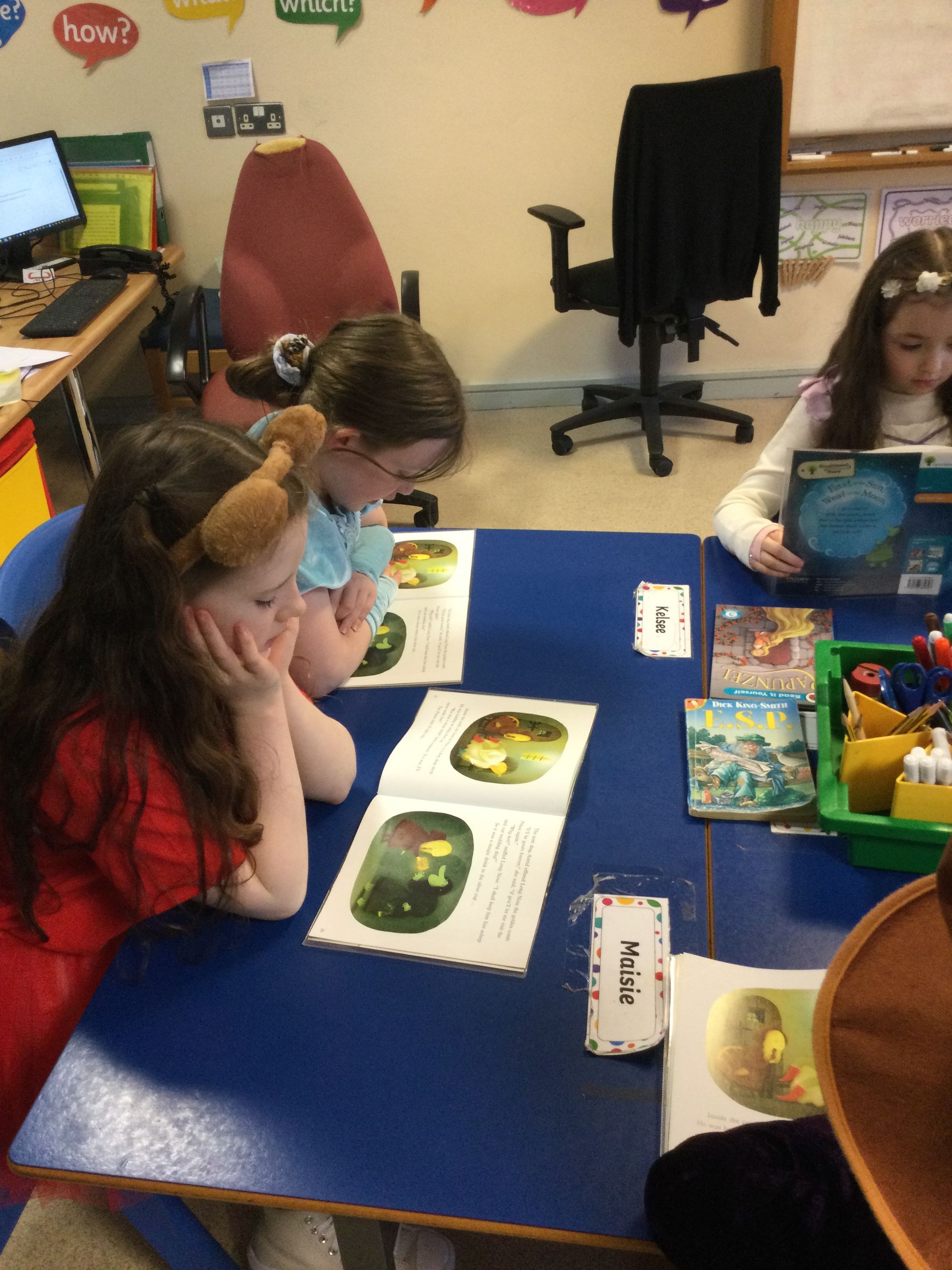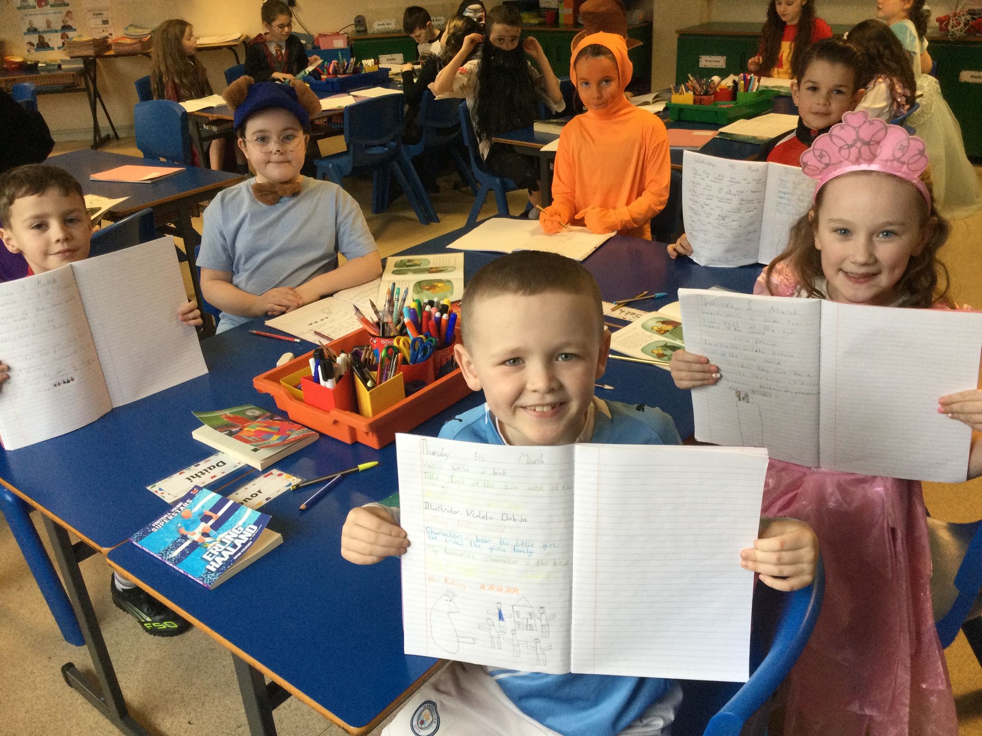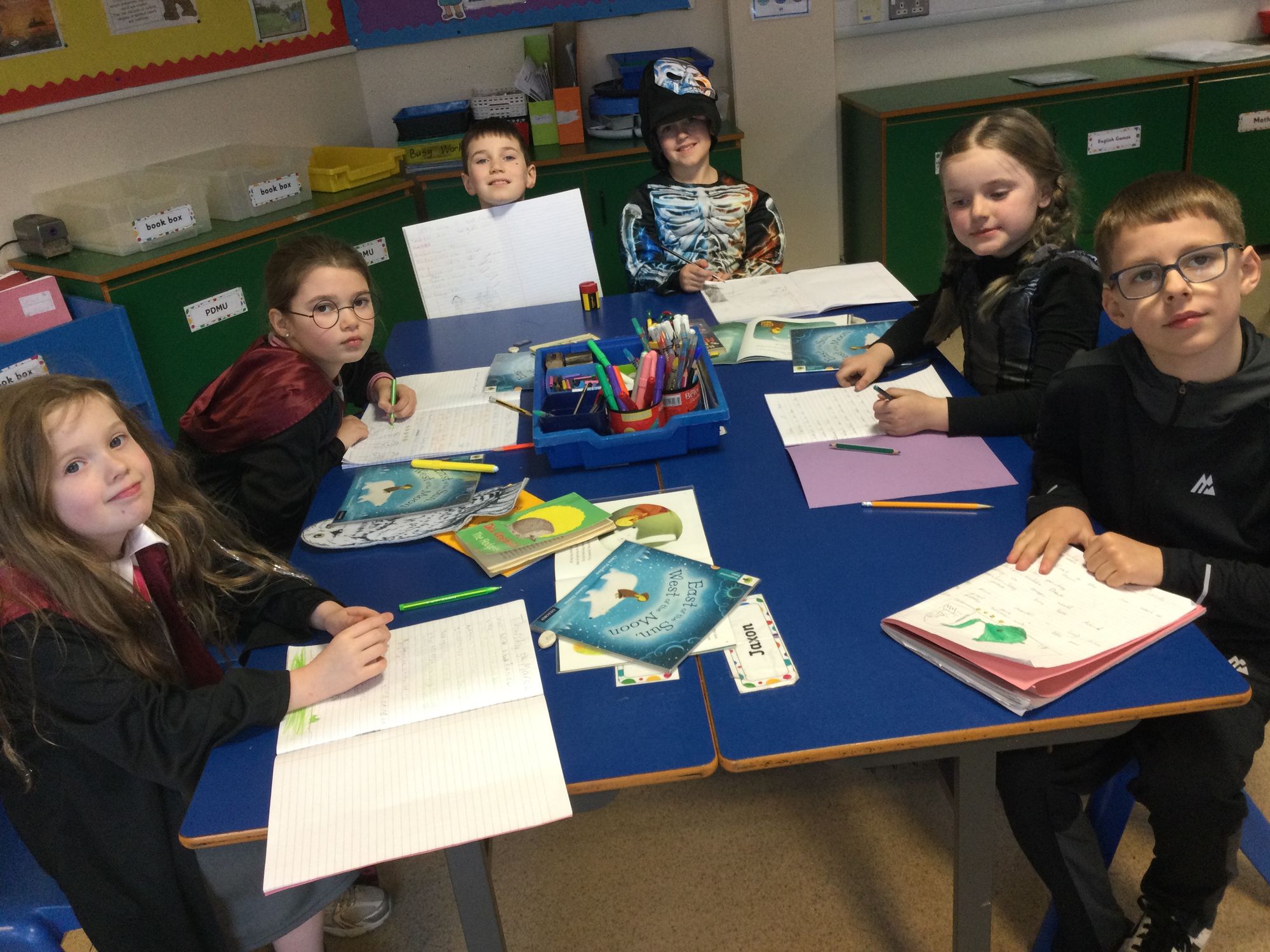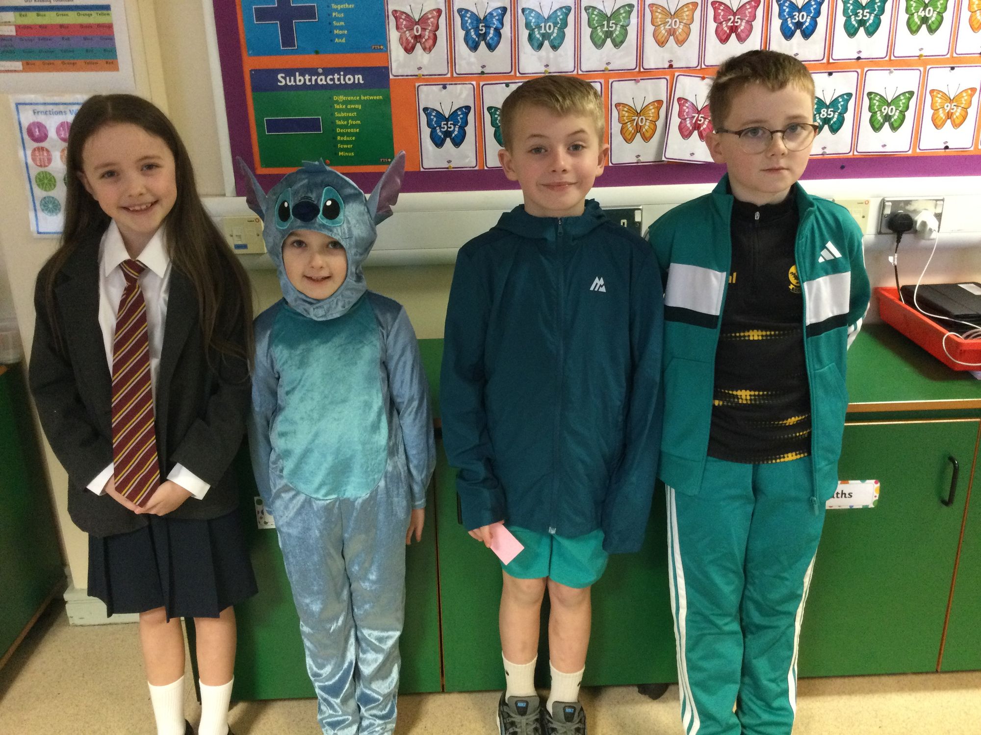 World Book Day in Year 4A. Thank you to Mrs Bradley for reading stories and poems. Boys and girls, your costumes were fantastic.