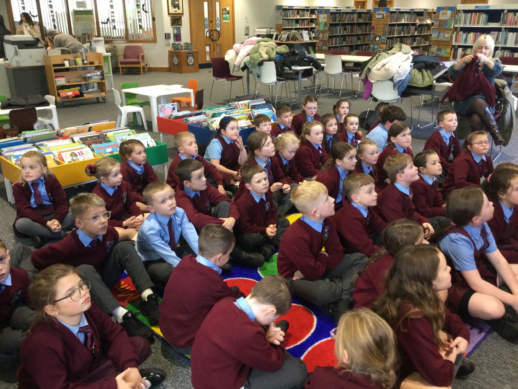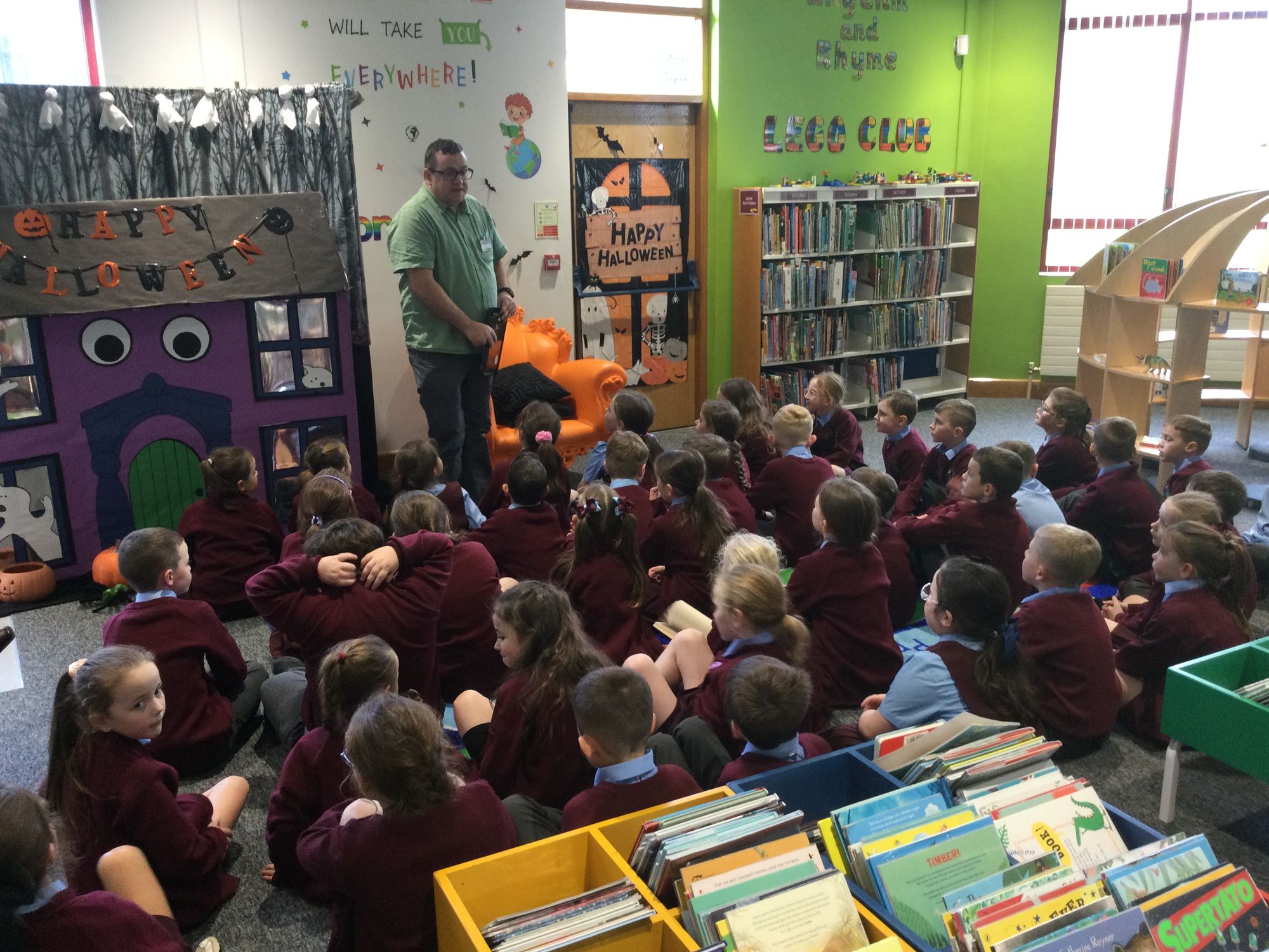 Year 4 Halloween storytelling at Creggan Library Published: 21st Oct, 2025 Year 4 really enjoyed the scary Halloween storytelling today at Creggan Library. Thank you so much Glen and Catherine. 4A - Miss J Boyle4B - Mrs R DohertyLiteracy Prev article Spooktacular writing in Year 6 Next article Halloween Creative Writing Contest Share Tweet Send 0 Comments Loading...